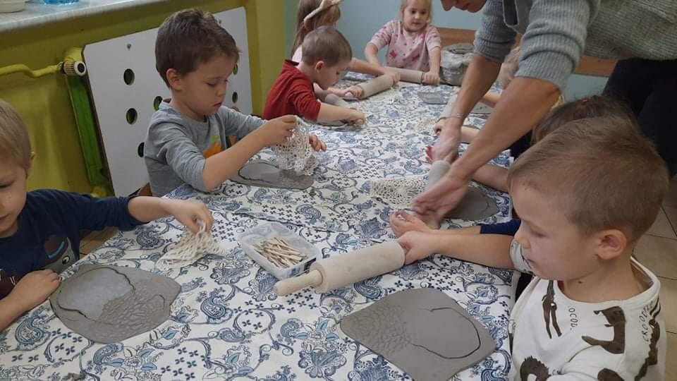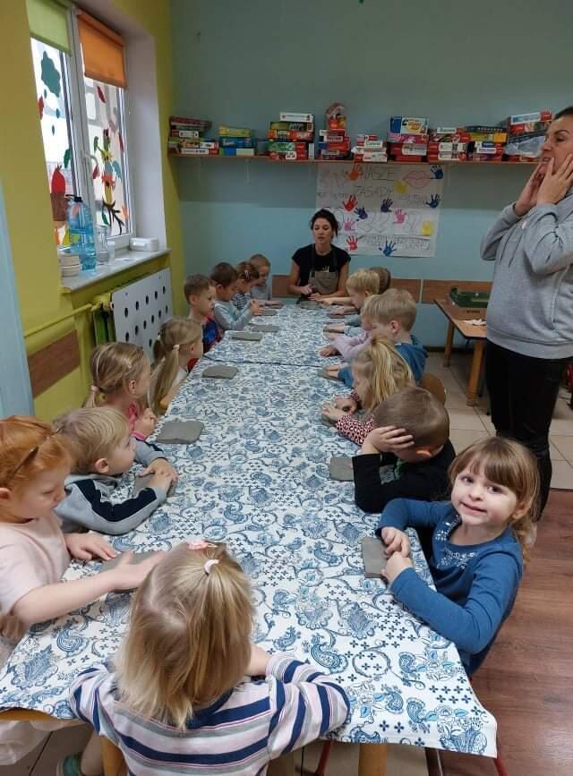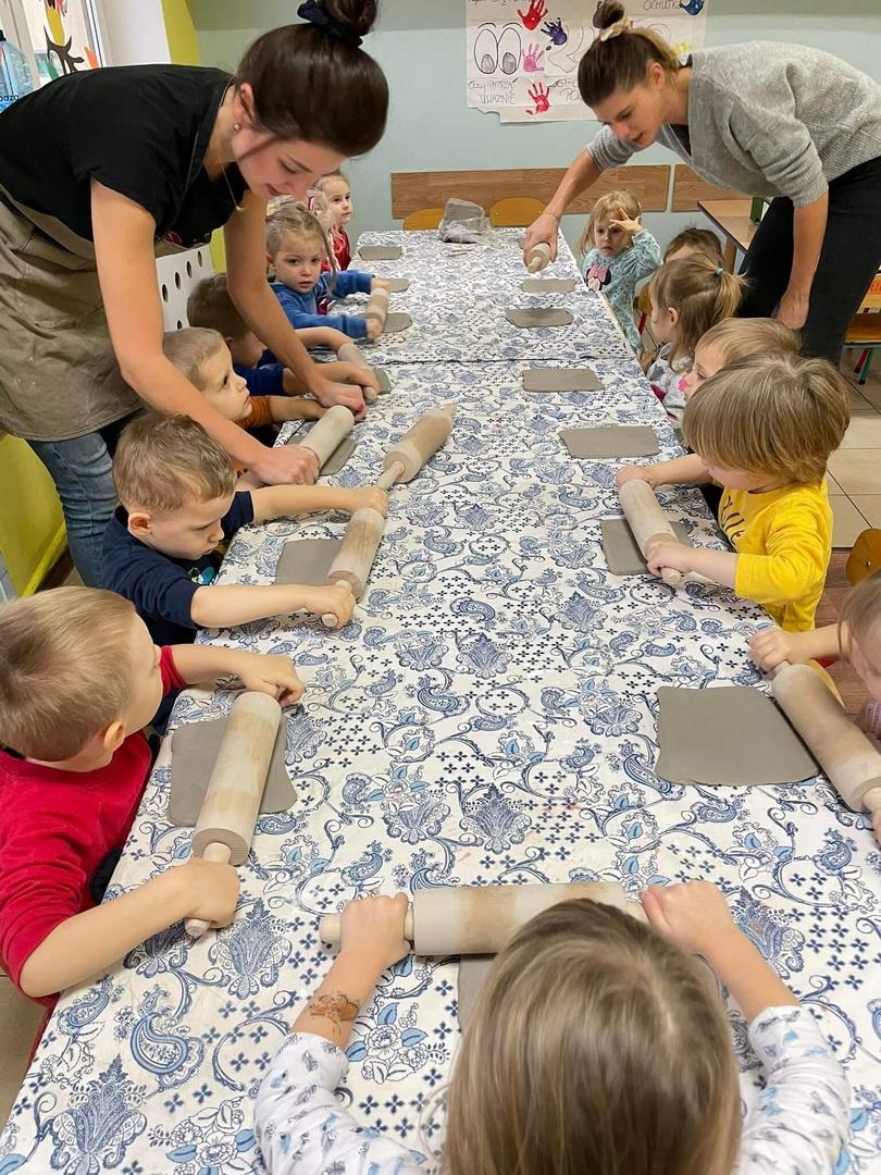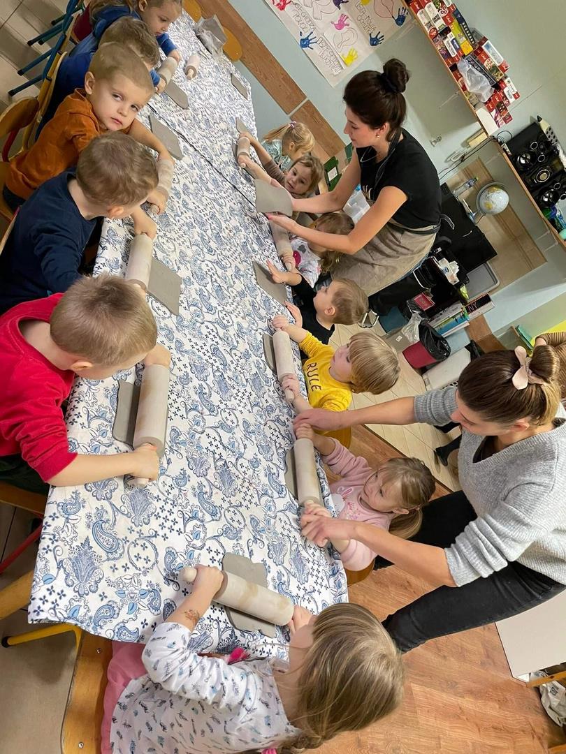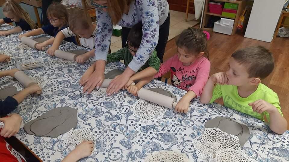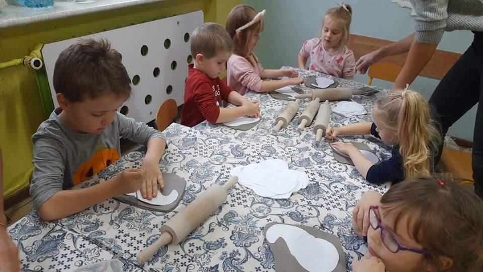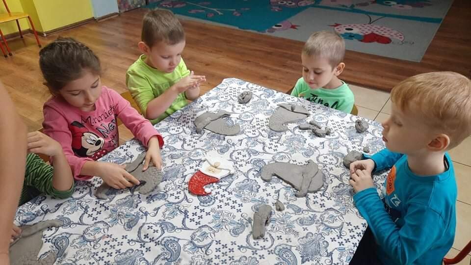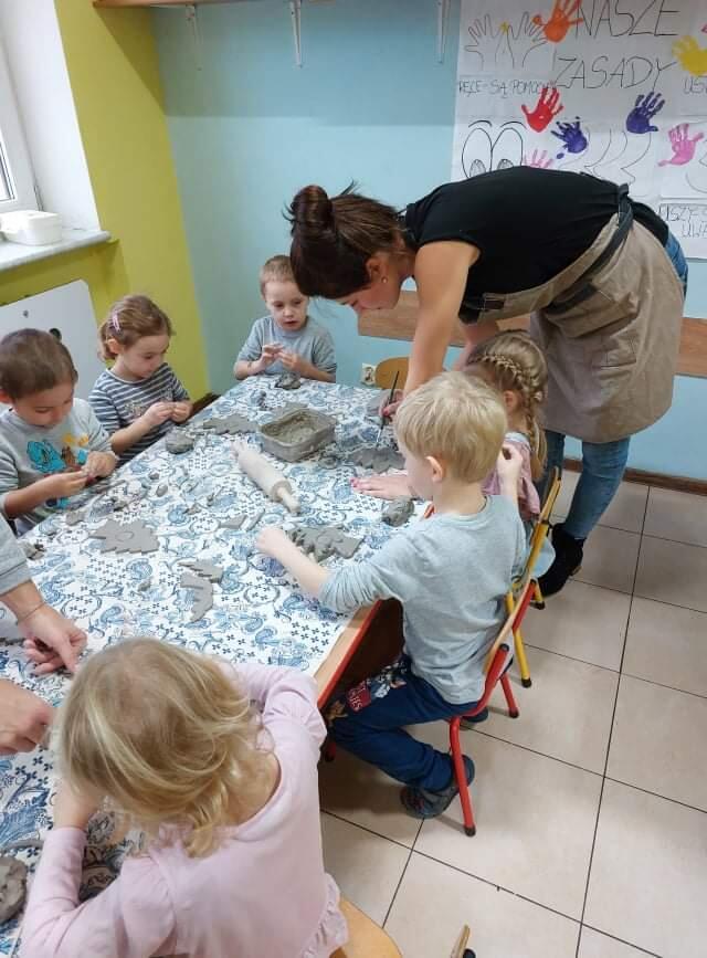 Za nami już pierwsza część warsztatów Bożonarodzeniowych. Dzieci przygotowały z gliny pamiątki, które teraz są w piecu i czekamy na ich powrót.
