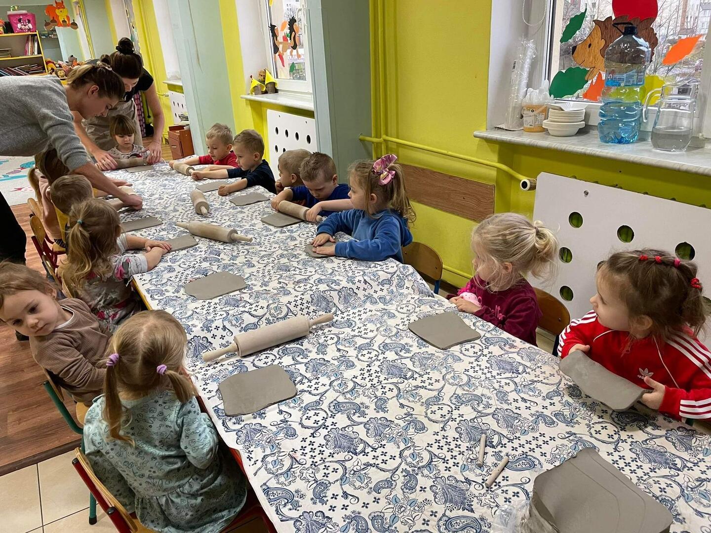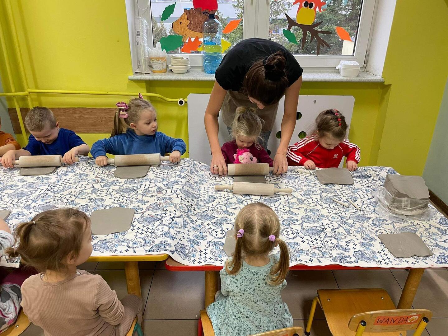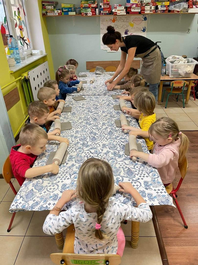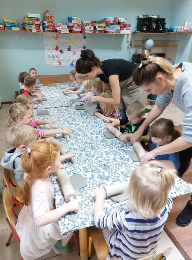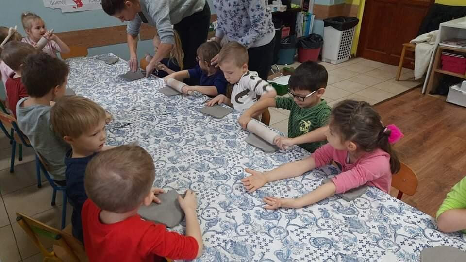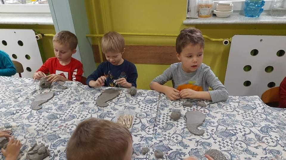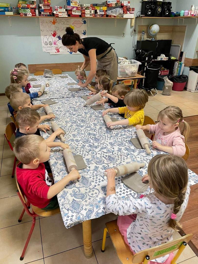 Za nami już pierwsza część warsztatów Bożonarodzeniowych. Dzieci przygotowały z gliny pamiątki, które teraz są w piecu i czekamy na ich powrót.