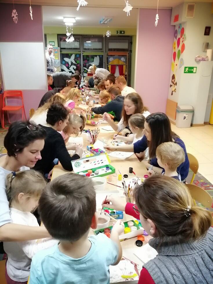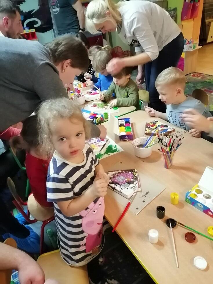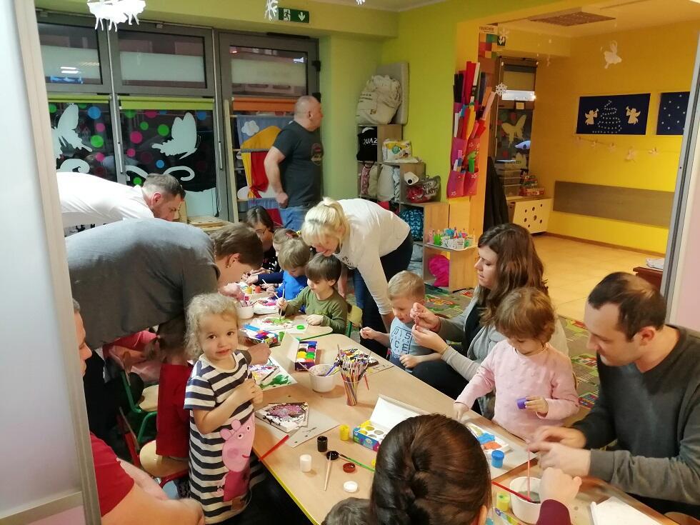 Przed Świętami Bożego Narodzenia, dnia 11.12.19  w naszym przedszkolu nadszedł czas świątecznych przygotowań i dekoracji. Właśnie z tej okazji zaprosiliśmy Rodziców do udziału w warsztatach bożonarodzeniowych. których tegorocznym tematem było zdobienie szopki bożonarodzeniowej. Rodzice wraz z dziećmi przy dźwiękach kolęd, wykazali się niezwykłą pomysłowością i kreatywnością.