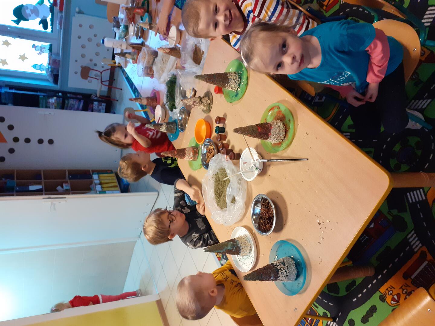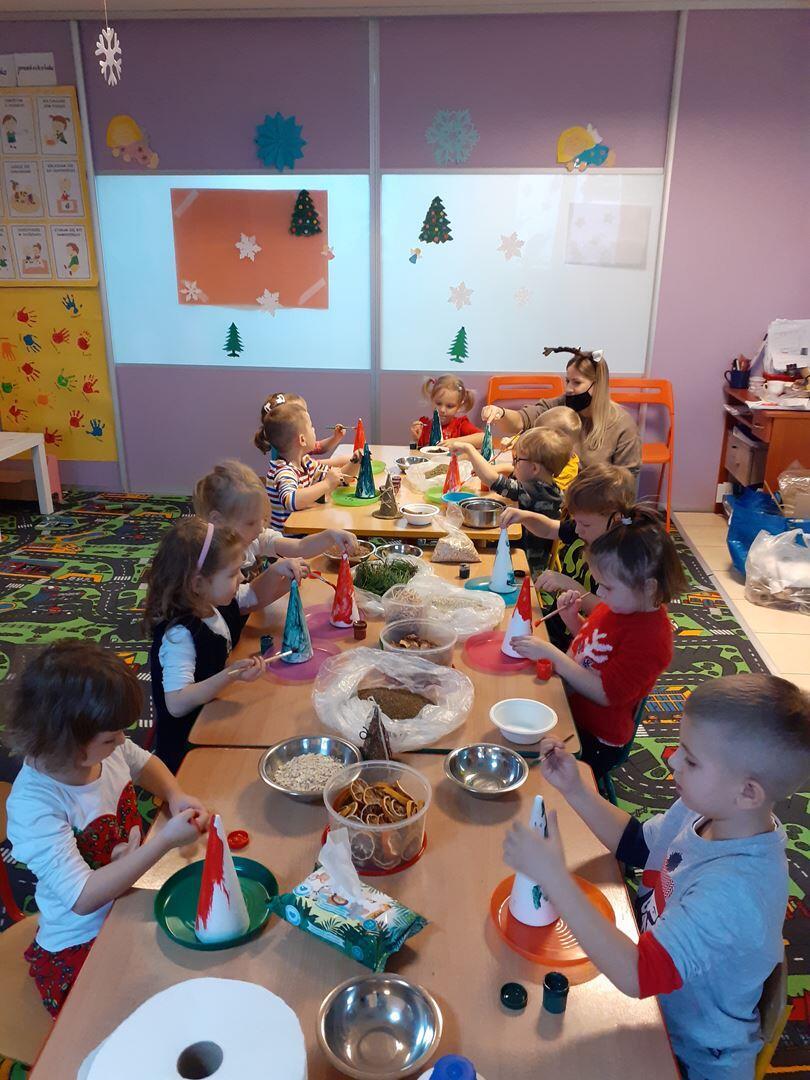 Wspólnie z grupą twrzone są inspiracje świąteczne.Zawitał do nas gośc który pomógł w przygotowaniach .Dzieci mogły według własnych pomysłów malować ,rysować ,Każde dziecko czeka z niecierpliwośćą na święta oraz na przekazanie prezentu własnego wykonania:).