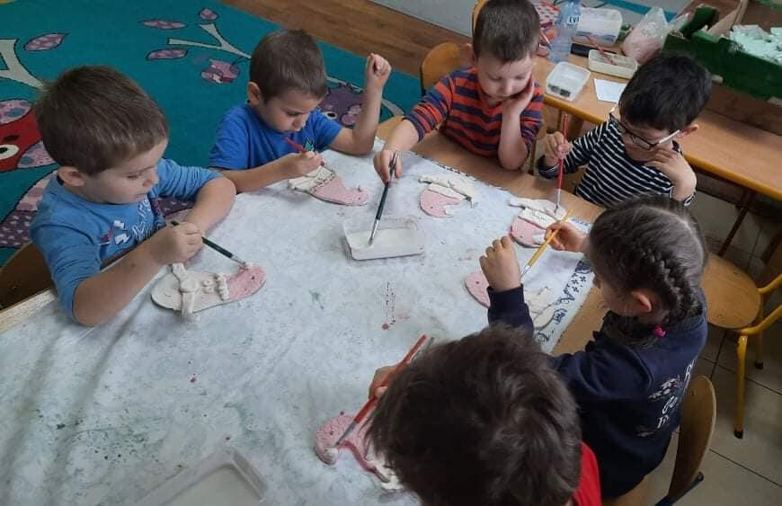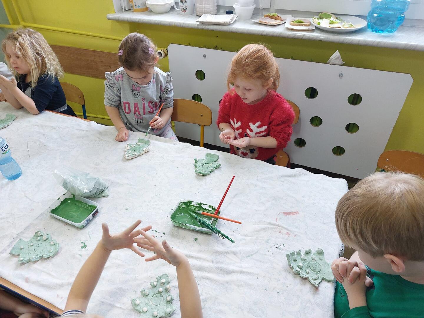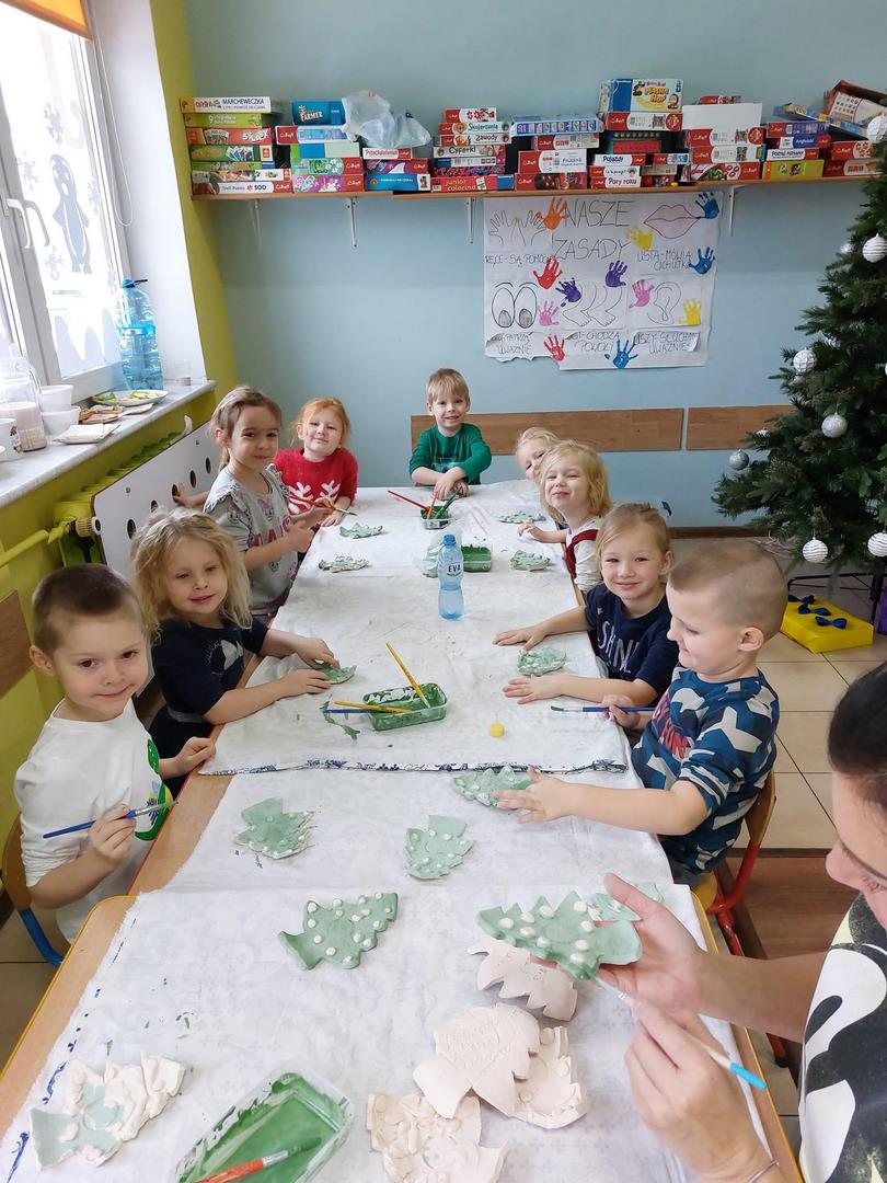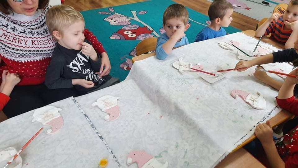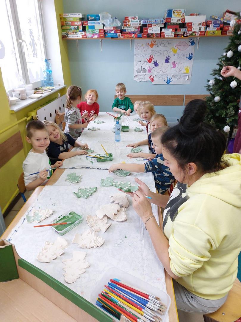 Za nami druga część warsztatów Bożonarodzeniowych. Dzieci pomalowały szkliwem pamiątki z gliny, które ponownie trafiły do pieca. Czekamy na ich powrót.