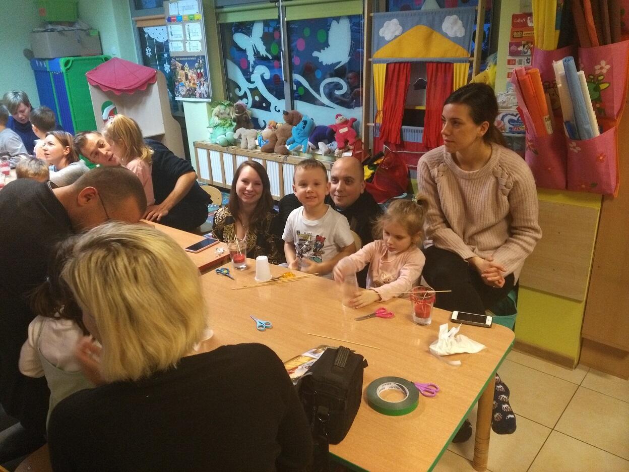 Przed Świętami Bożego Narodzenia, dnia 19.12.18 w naszym przedszkolu nadszedł czas świątecznych przygotowań i dekoracji. Właśnie z tej okazji zaprosiliśmy Rodziców do udziału w warsztatach kreatywno-twórczych przygotowanych przez Panią Elę, których tegorocznym celem było tworzenie świec świątecznych. Rodzice wraz z dziećmi przy dźwiękach kolęd, wykazali się niezwykłą pomysłowością i kreatywnością.