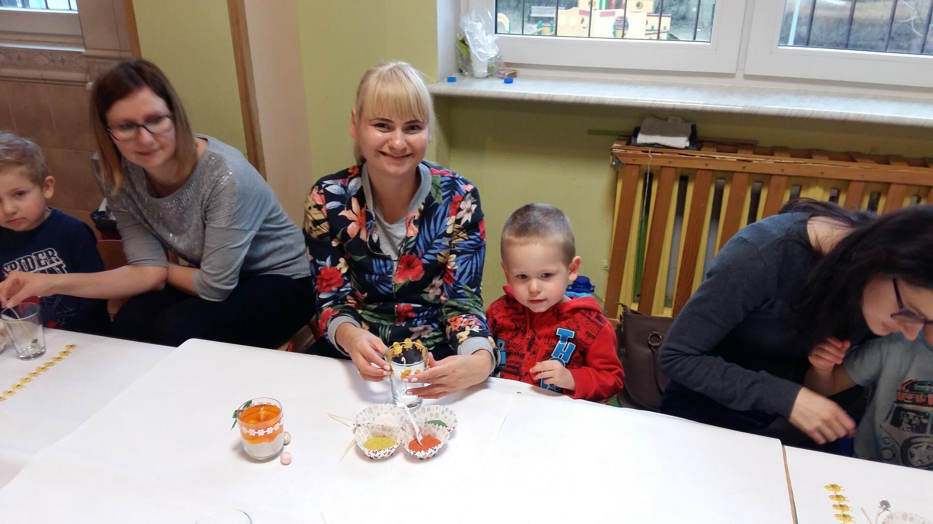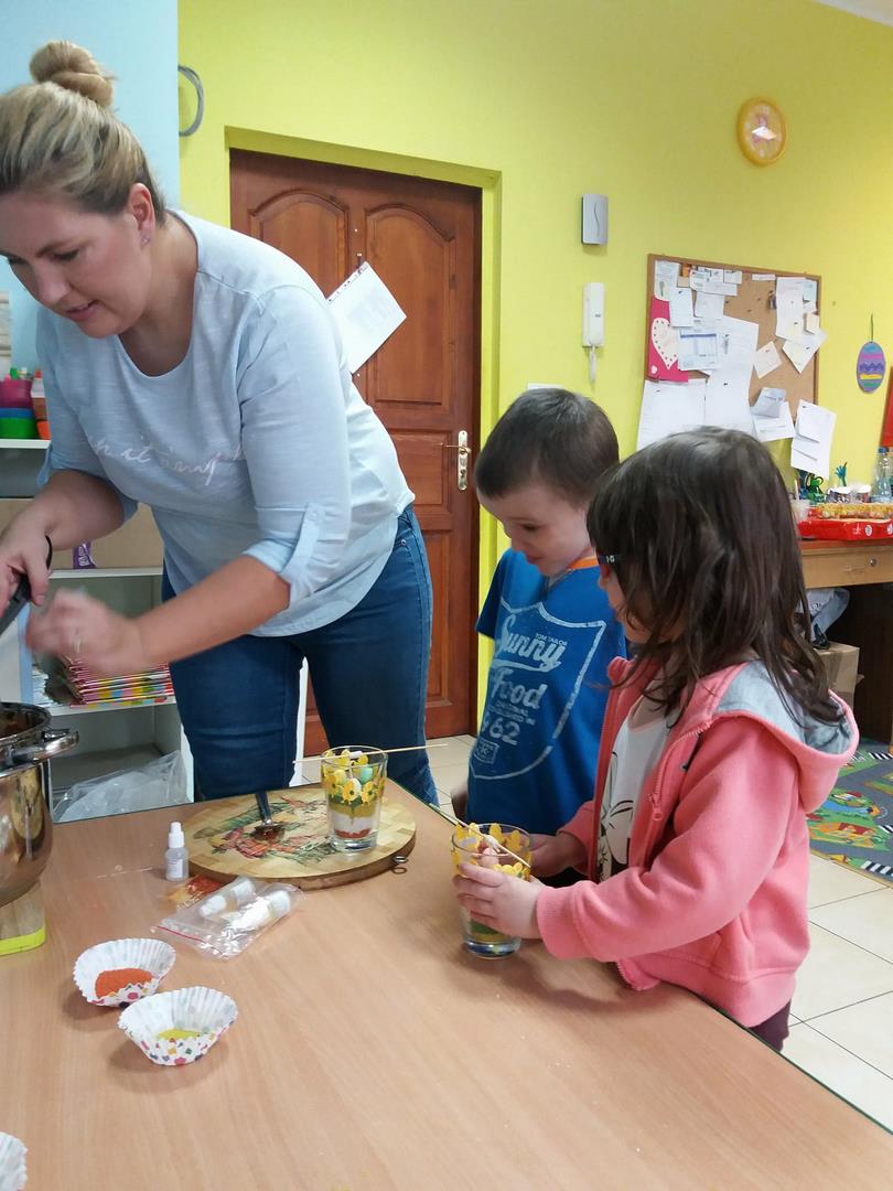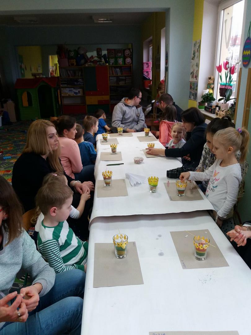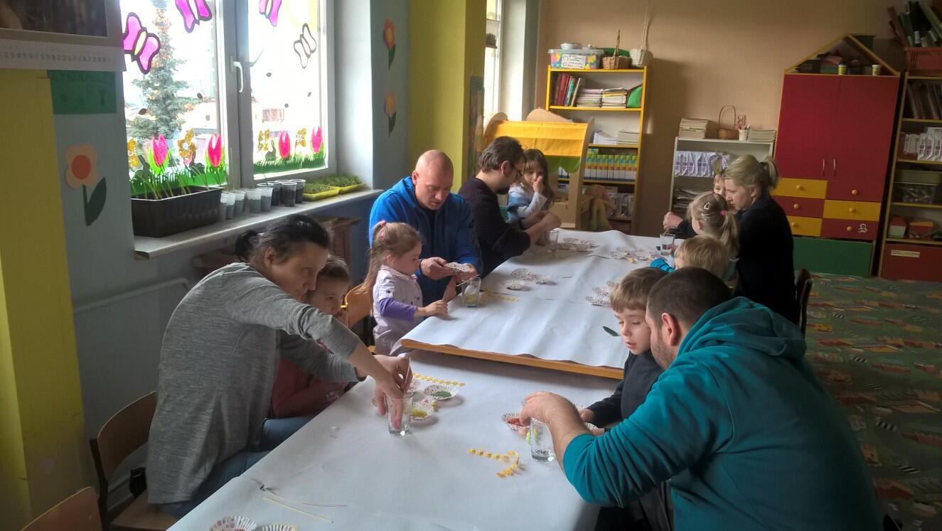 Właśnie z tej okazji zaprosiliśmy rodziców, na warsztaty. Rodzice wraz z dziećmi zrobili prześliczne świeczki z dekoracjami wielkanocnymi.