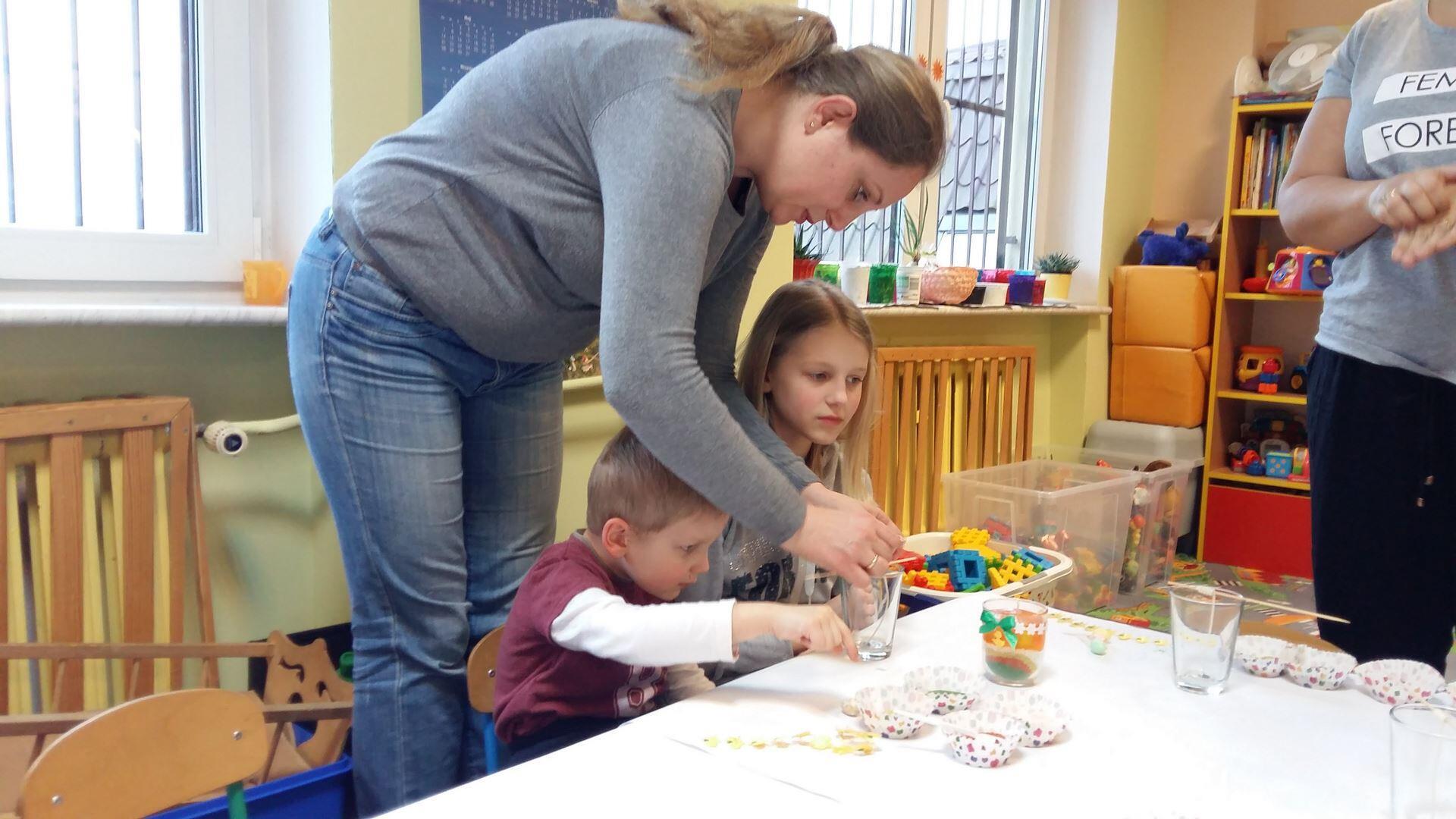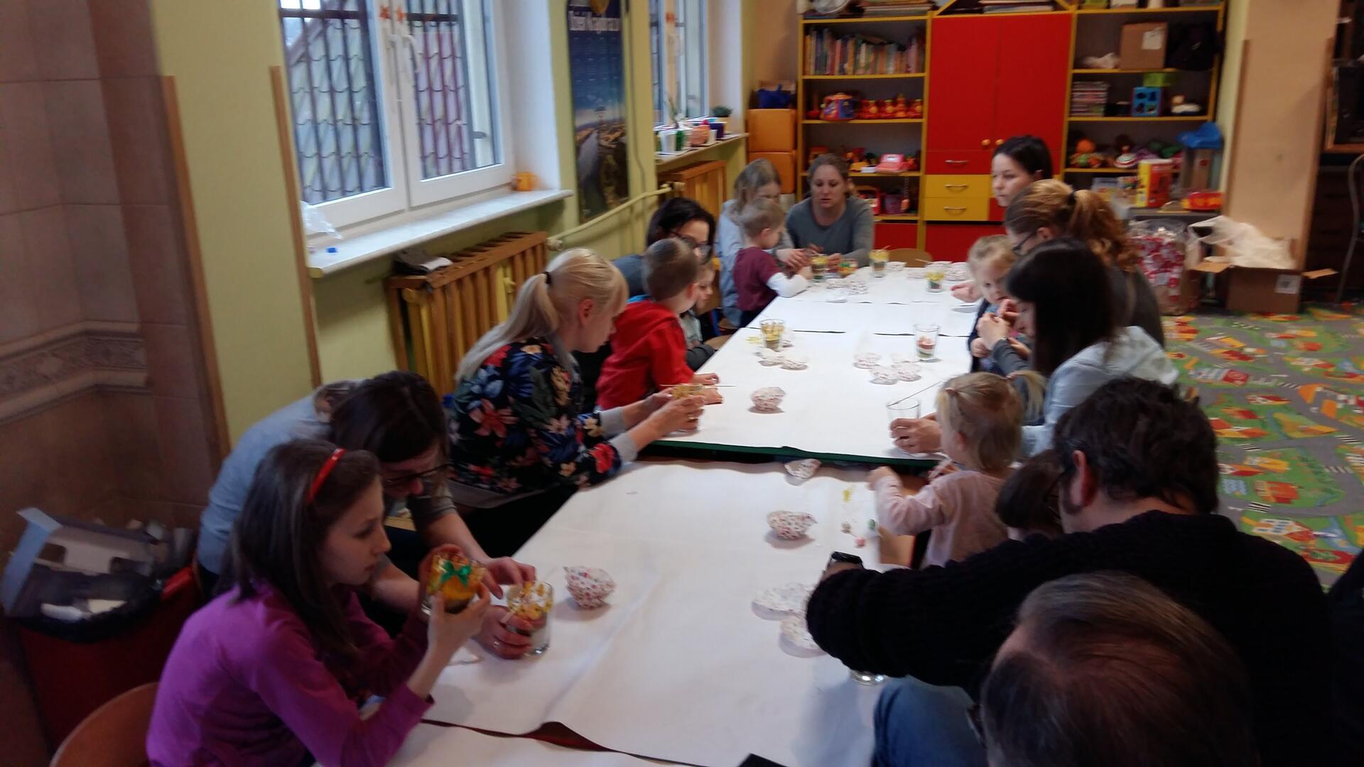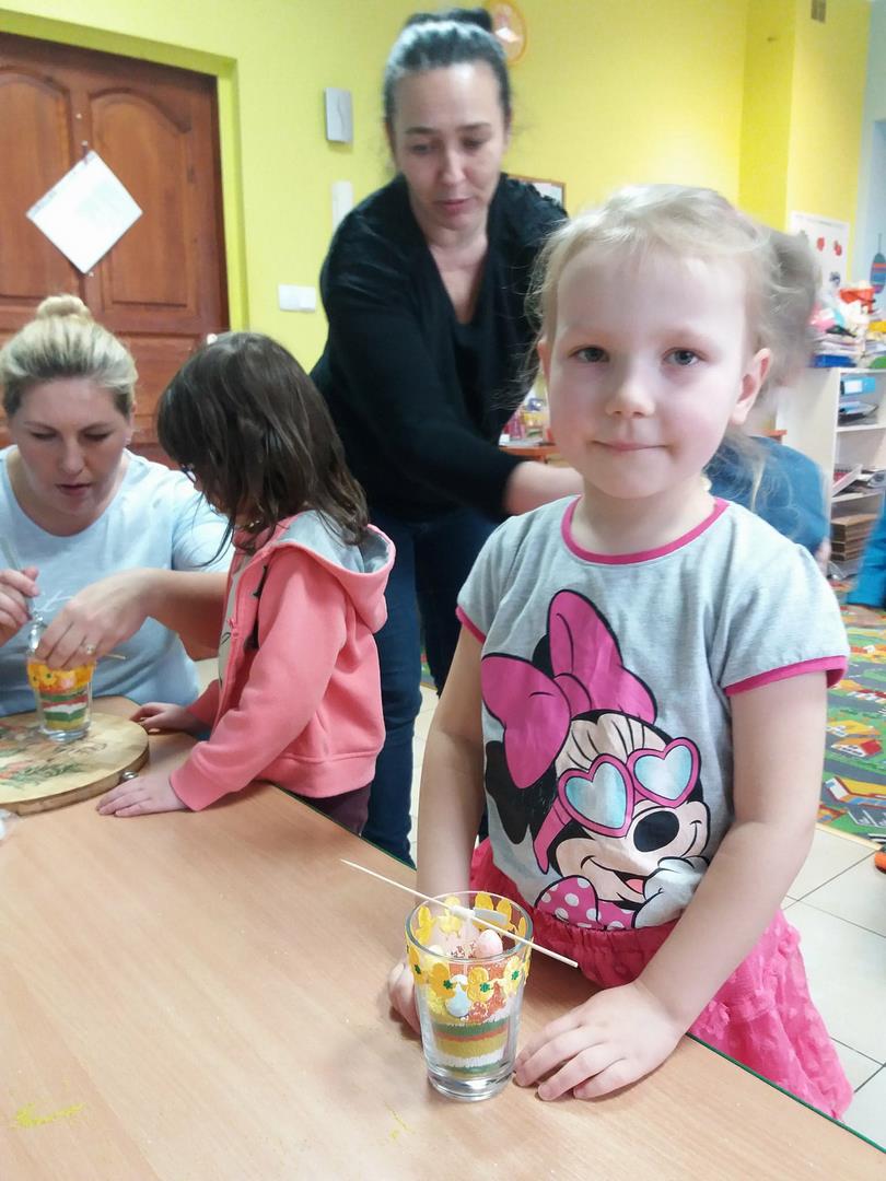 Właśnie z tej okazji zaprosiliśmy rodziców, na warsztaty. Rodzice wraz z dziećmi zrobili prześliczne świeczki z dekoracjami wielkanocnymi.