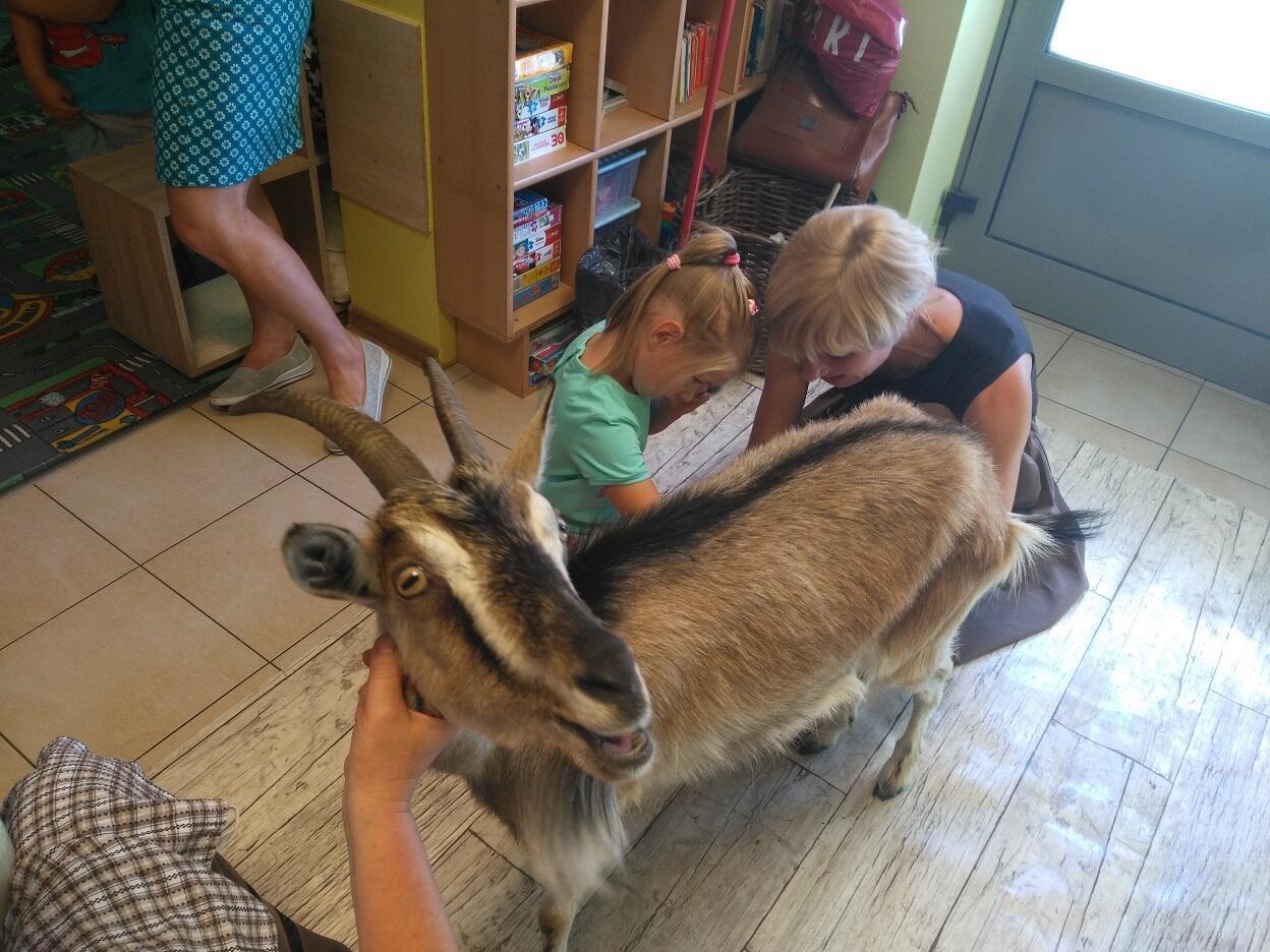 Największą atrakcją była koza Magda. Dzieci miały okazję obserwować karmienie kozy, pokaz ręcznego dojenia kozy, a chętne przedszkolaki same mogły wykonać tę czynność. Miały okazję zapoznać się z gospodarczym procesem powstawania twarogu i masła. Samodzielnie wykonały masło w małej, specjalnie w tym celu skonstruowanej maselnicy. Dzieci miały też możliwość zobaczyć tradycyjne narzędzia do ręcznego wyrobu masła i twarogu: maselnica, cedzidło, garnki kamionkowe, centryfugę, drewniane kanki, łyżki itp. Warsztaty ,,Mleczna droga” to wspaniała przygoda dla dzieci.