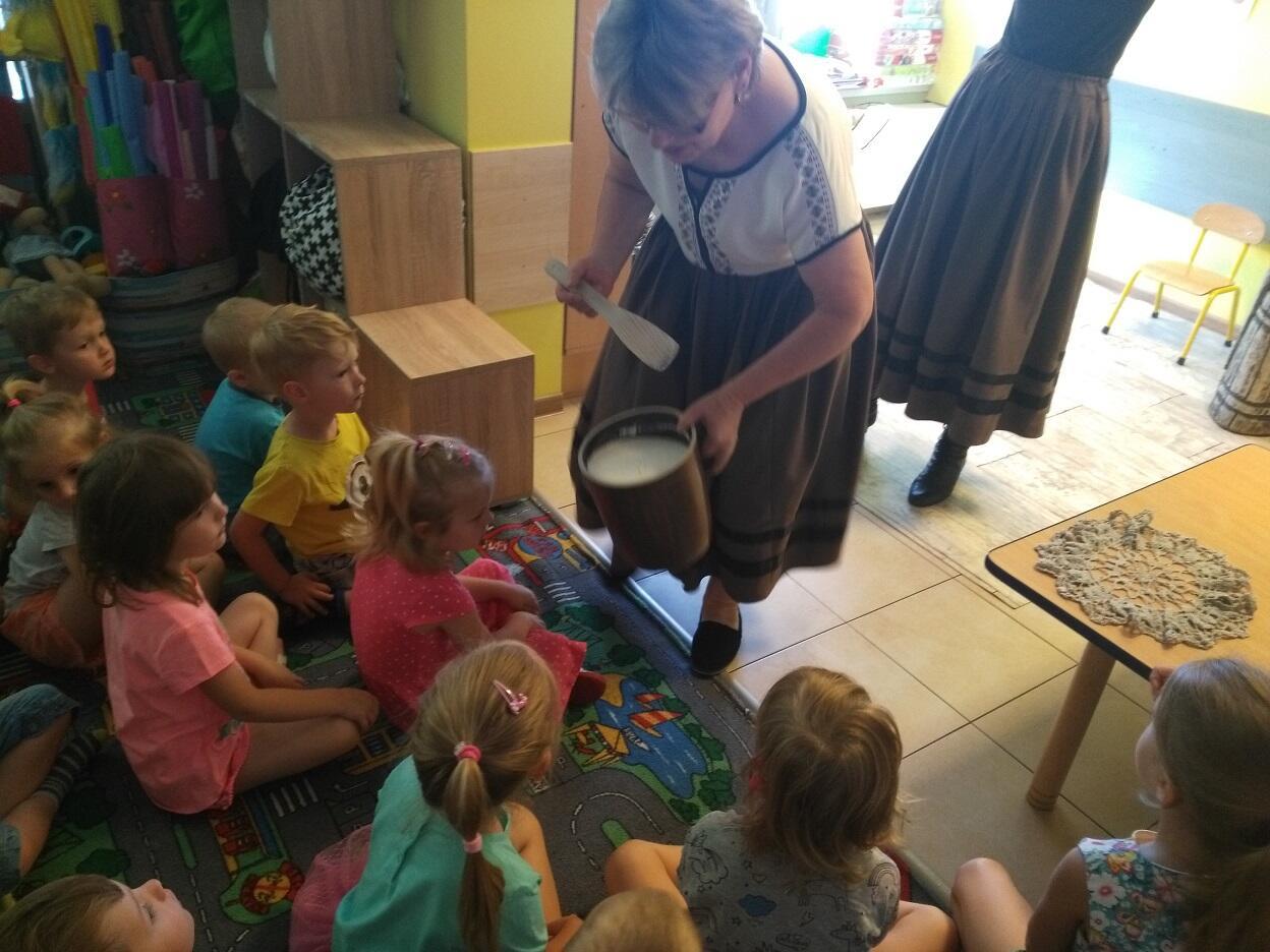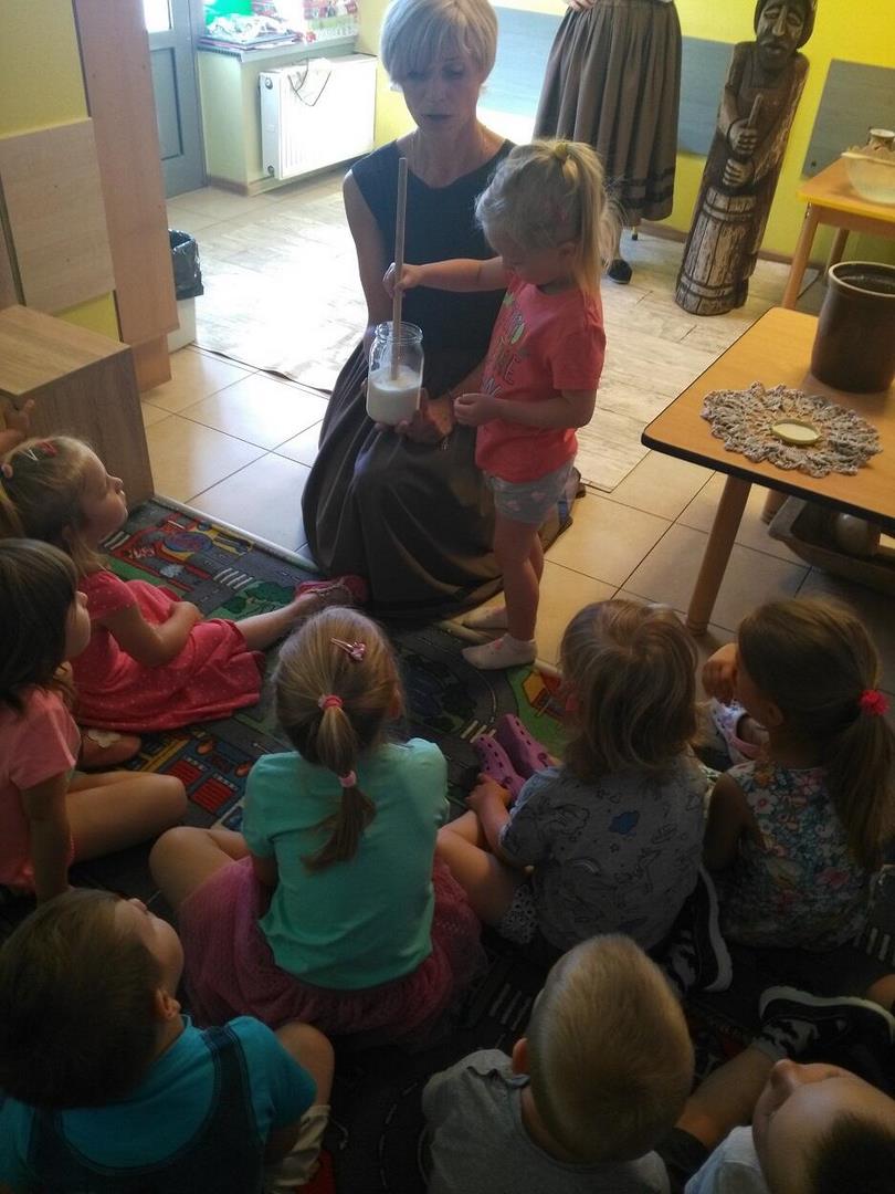 Dnia 4 czerwca dzieci z naszego przedszkola uczestniczyły w zajęciach edukacyjnych ,,Mleczna droga”. Prowadzące, w ludowych strojach z Gospodarstwa Agroturystycznego, przeprowadziły warsztaty promujące zdrowy styl życia, polską tradycję kaszubską i kociewską, kulturę ludową oraz właściwy stosunek do zwierząt gospodarskich.