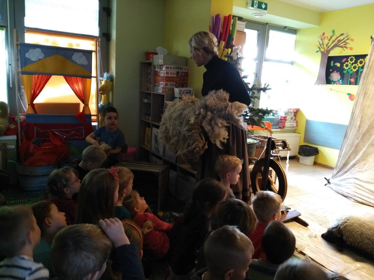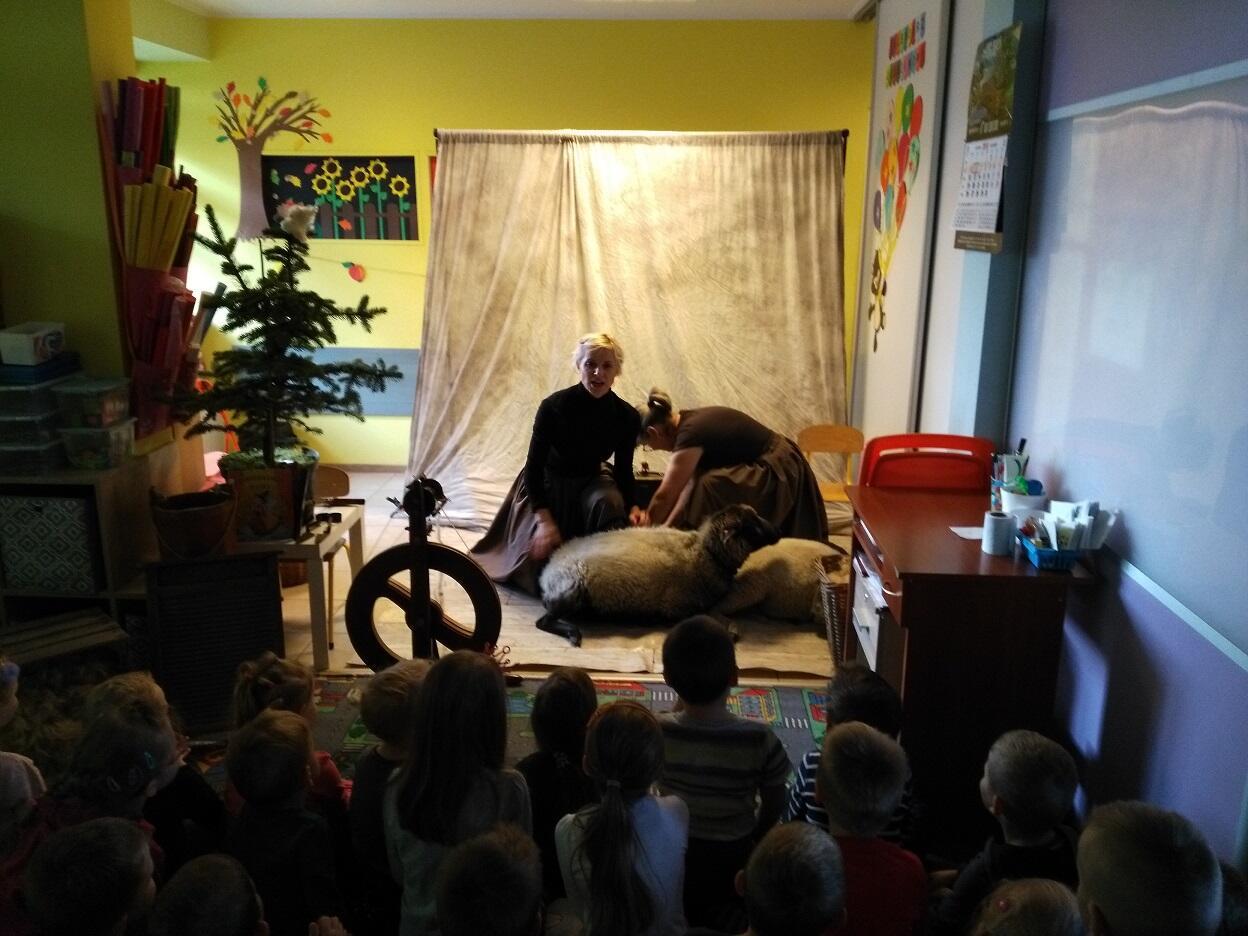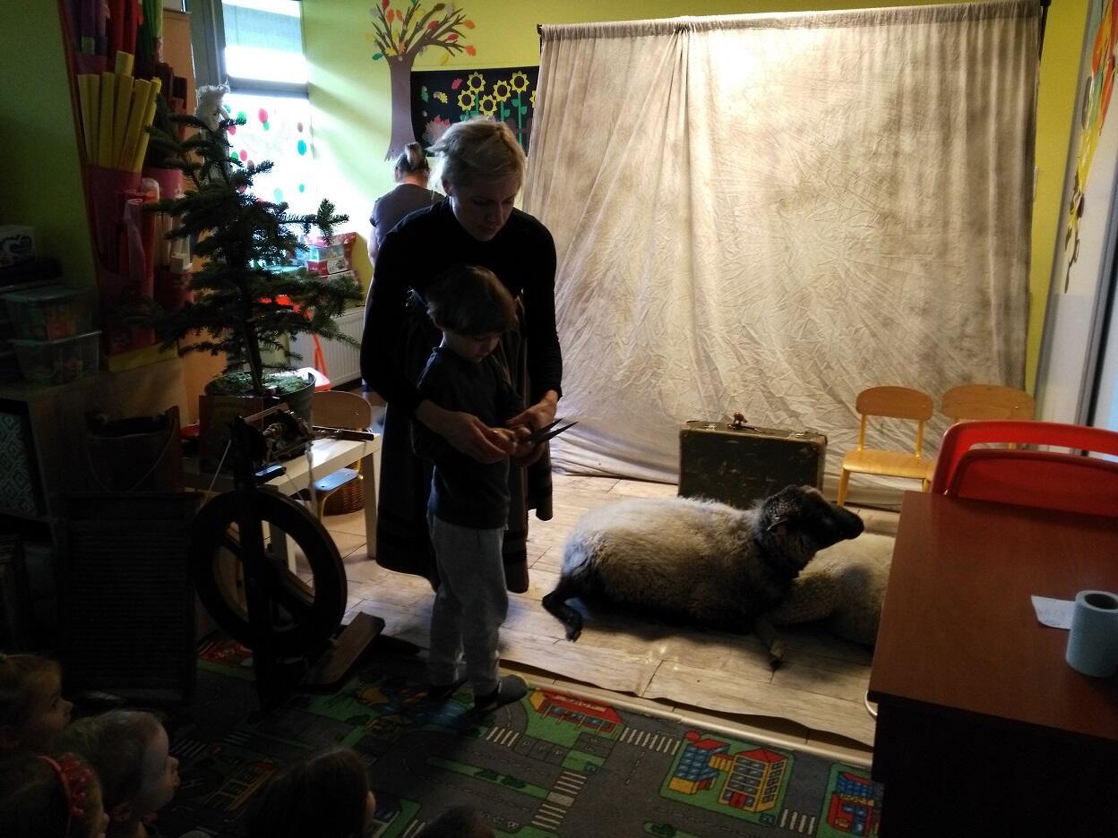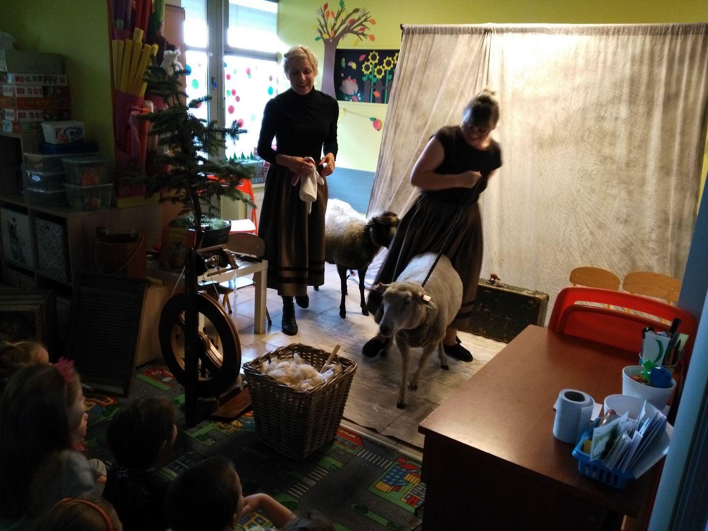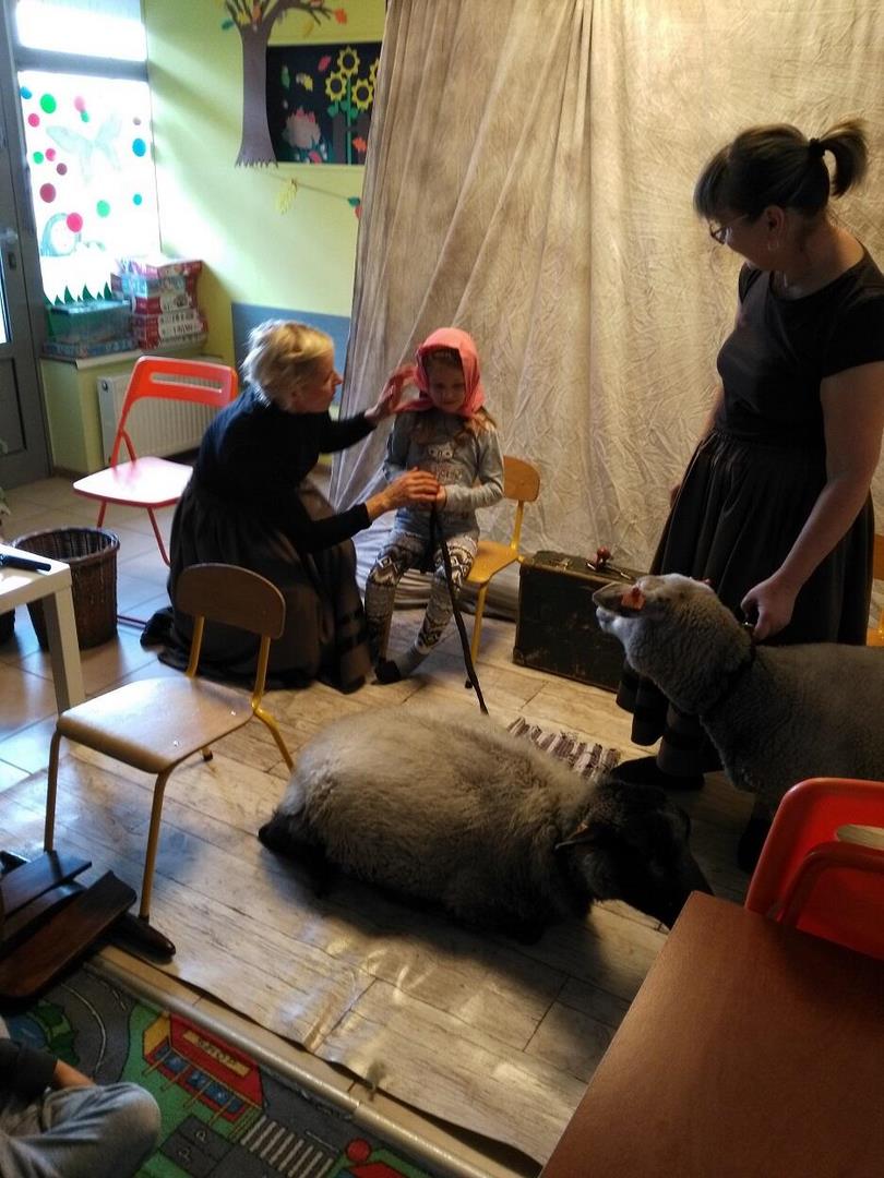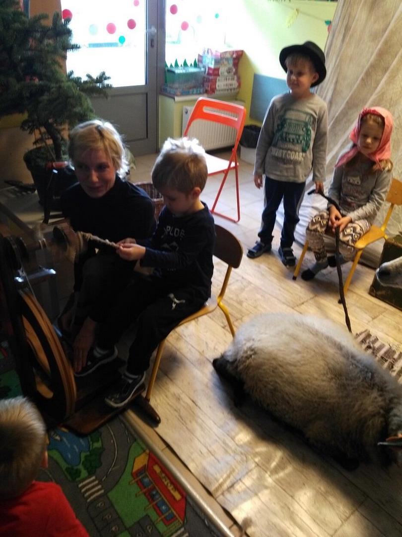 Dnia 08.11 Akademię Przedszkolaka odwiedzili goście z Zagrody Powroty, dzieci miały okazję uczestniczyć w warsztatach edukacyjnych, pt. „Po nitce do kłębka” z owieczkami wrzosówką Tosią i pomorską Amy. Prowadząca zajęcia Pani Agnieszka opowiedziała skąd się bierze i jak powstaje wełna. Strzygąc owce uzyskuje się wysokiej jakości runo - pozostającą w jednym kawałku całą sierść owcy.