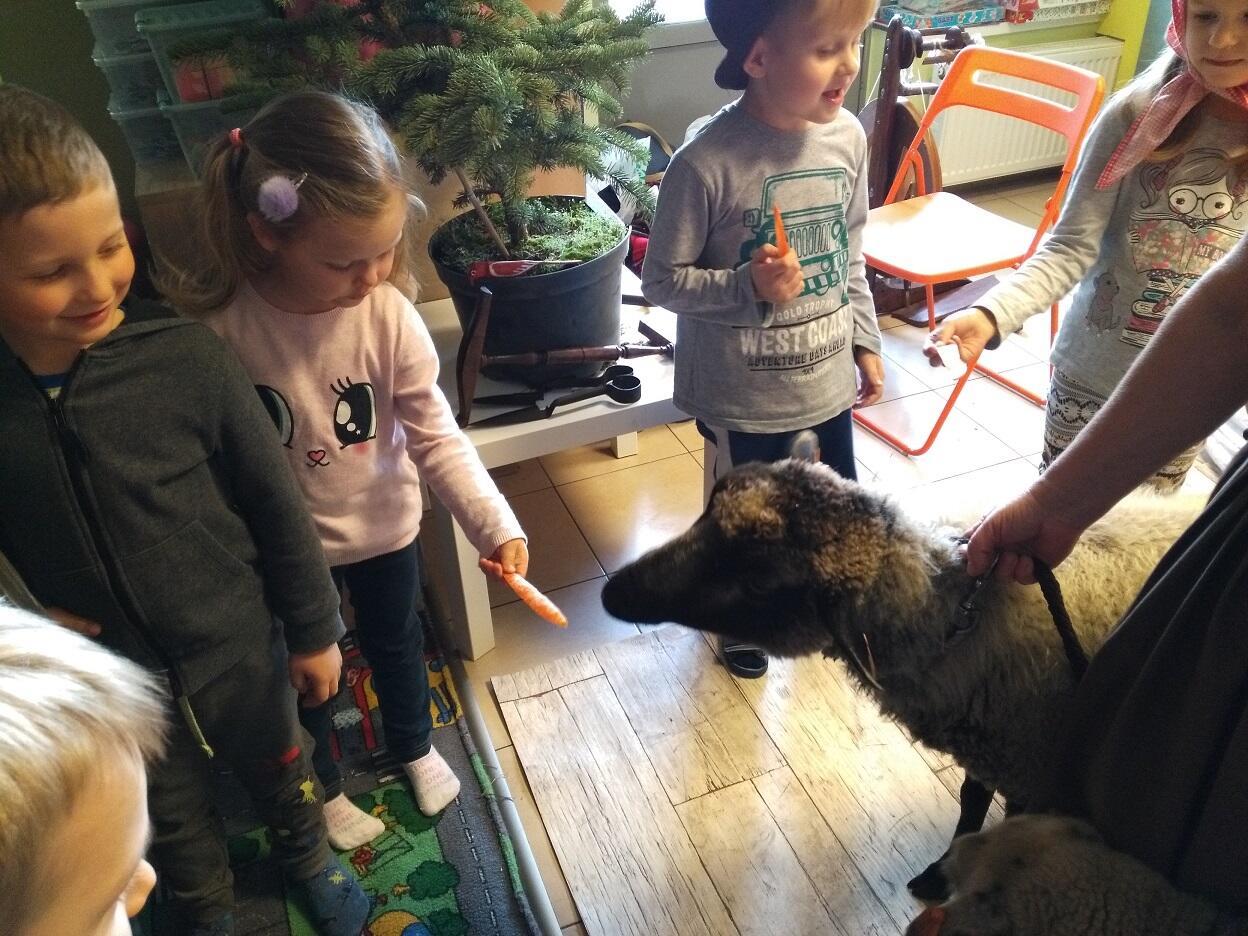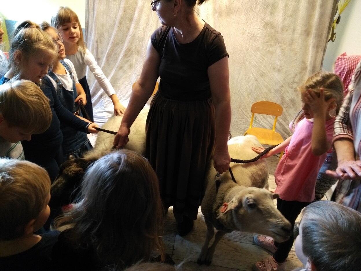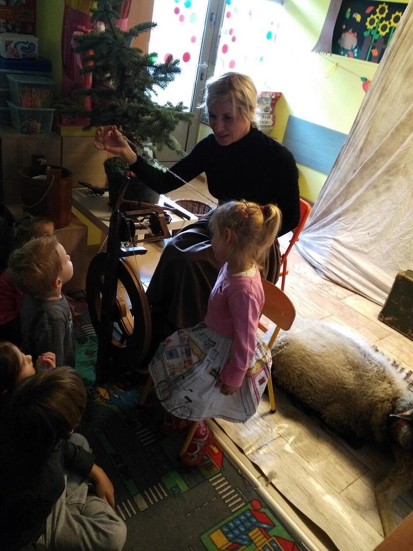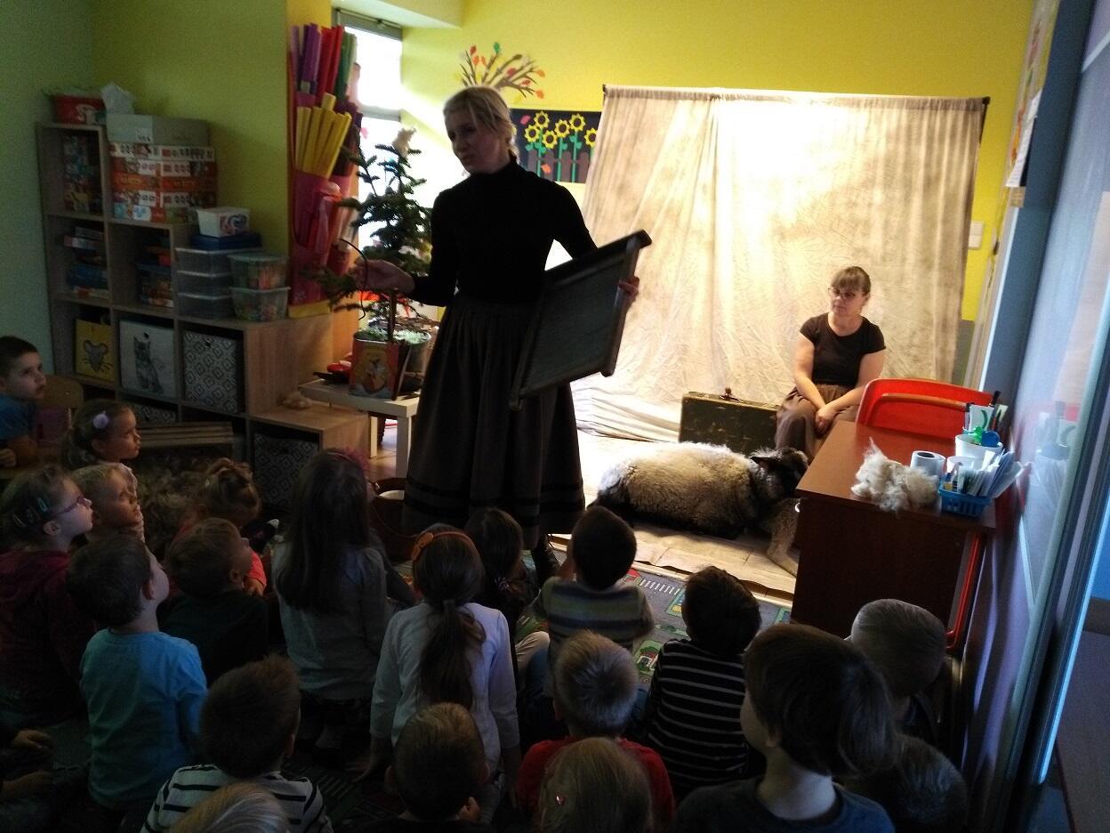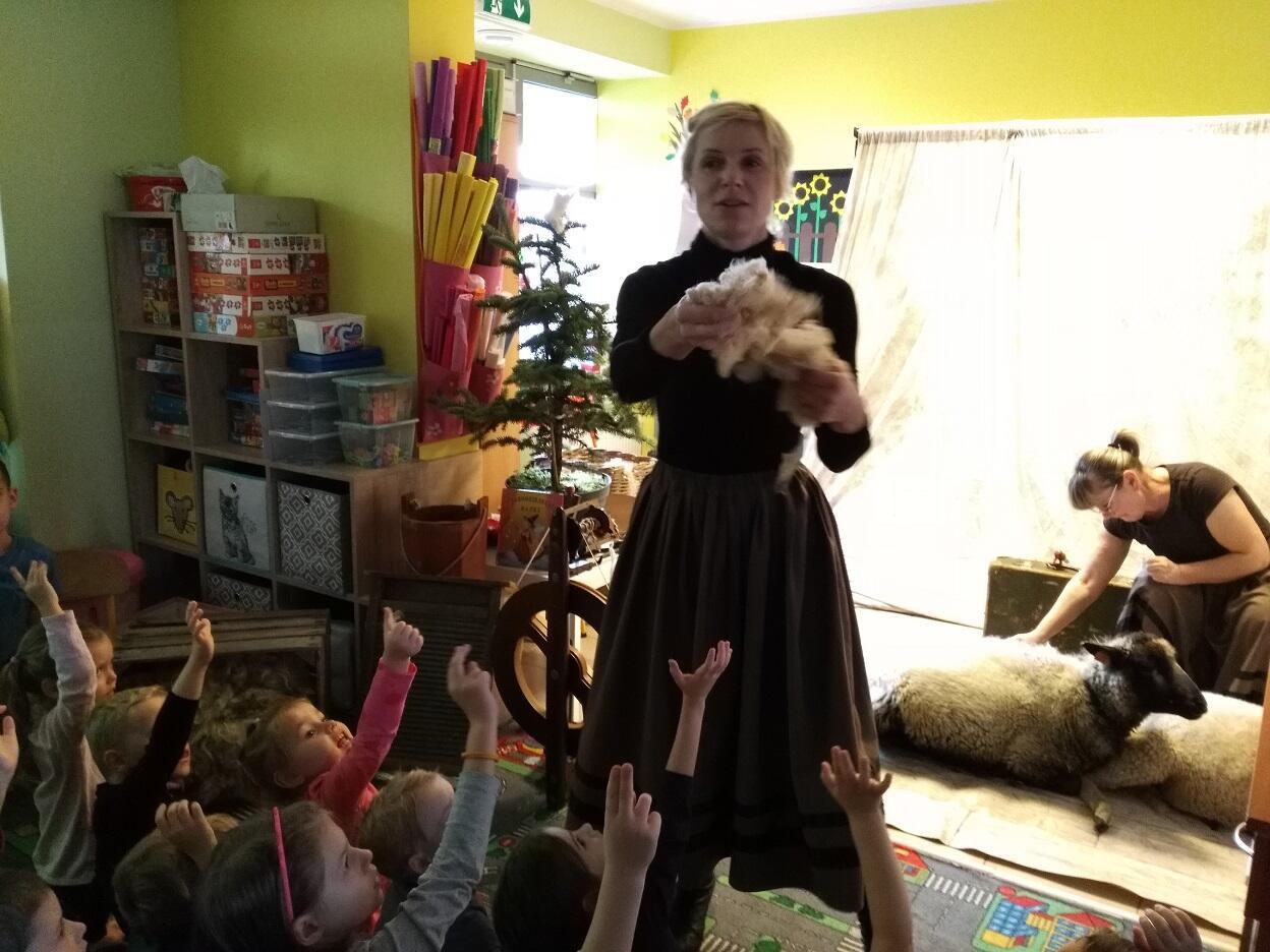 Dnia 08.11 Akademię Przedszkolaka odwiedzili goście z Zagrody Powroty, dzieci miały okazję uczestniczyć w warsztatach edukacyjnych, pt. „Po nitce do kłębka” z owieczkami wrzosówką Tosią i pomorską Amy. Prowadząca zajęcia Pani Agnieszka opowiedziała skąd się bierze i jak powstaje wełna. Strzygąc owce uzyskuje się wysokiej jakości runo - pozostającą w jednym kawałku całą sierść owcy.