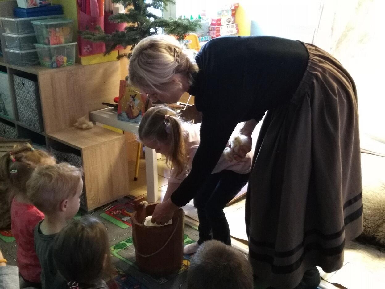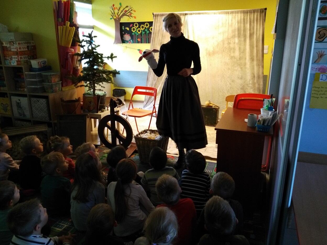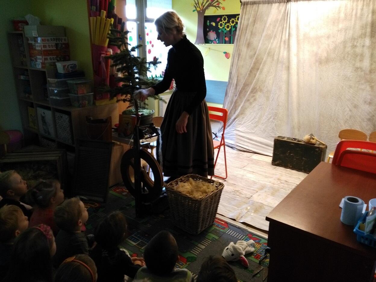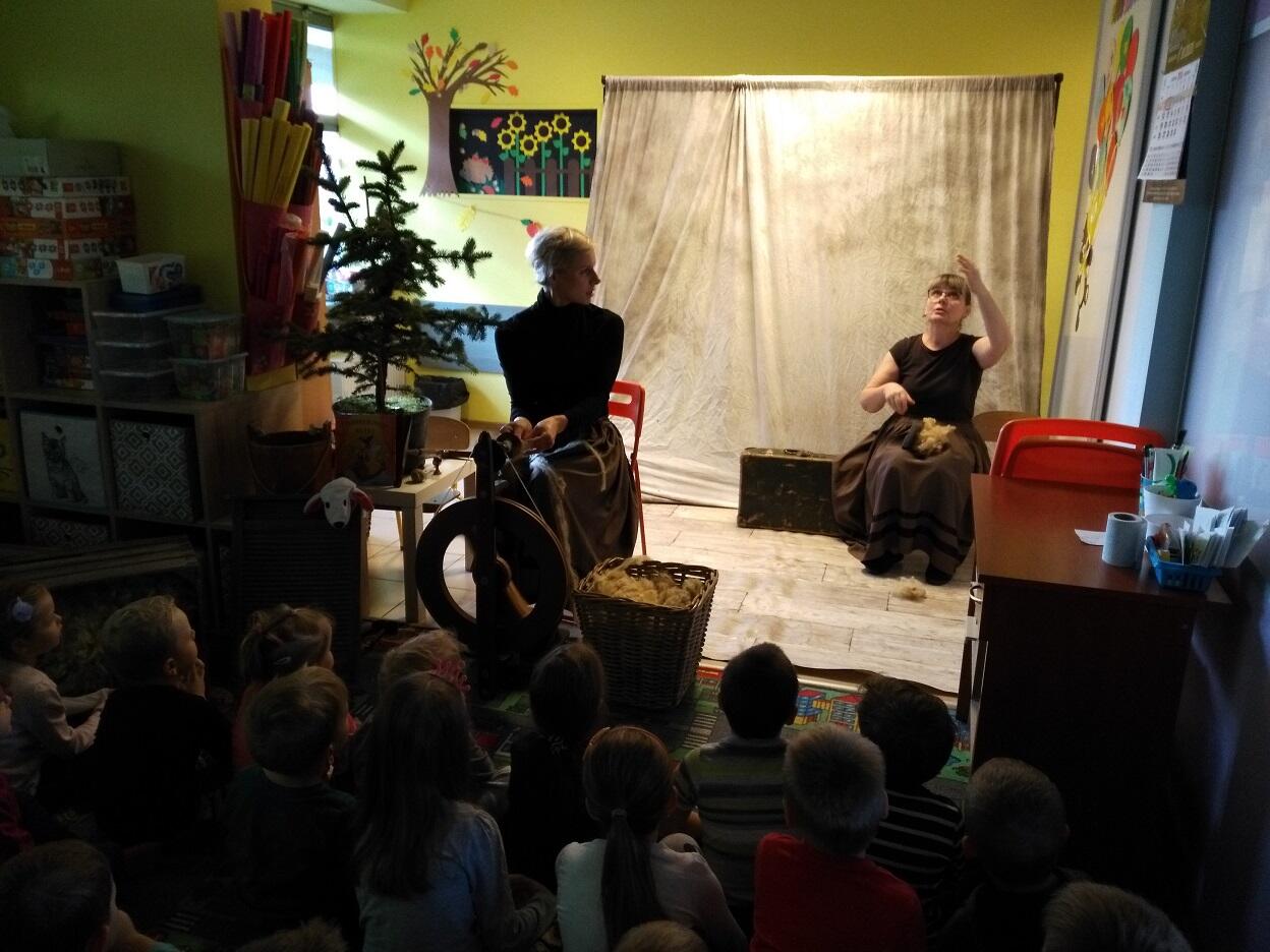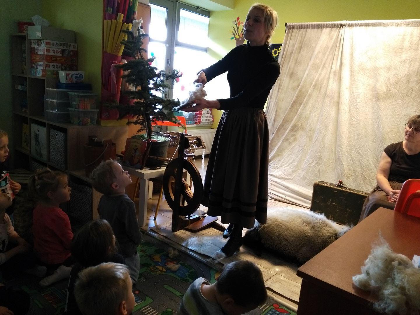 Dnia 08.11 Akademię Przedszkolaka odwiedzili goście z Zagrody Powroty, dzieci miały okazję uczestniczyć w warsztatach edukacyjnych, pt. „Po nitce do kłębka” z owieczkami wrzosówką Tosią i pomorską Amy. Prowadząca zajęcia Pani Agnieszka opowiedziała skąd się bierze i jak powstaje wełna. Strzygąc owce uzyskuje się wysokiej jakości runo - pozostającą w jednym kawałku całą sierść owcy.
