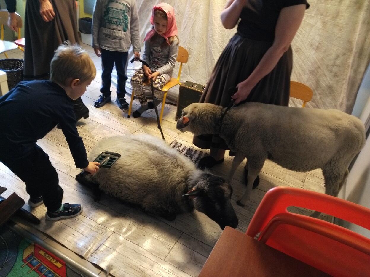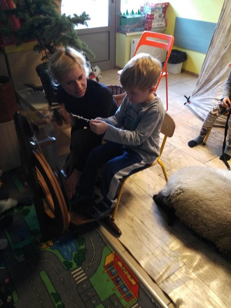 Runo jest prane tak, aby nie wypłukiwać zeń naturalnego tłuszczu, lanoliny. Dzięki niej wełna nie wchłania wilgoci. Czesanie wełny, albo, jak mawiają hodowcy, „gręplowanie”, umożliwia następnie przędzenie jej w jedną nić. Z nici powstają wełniane tkaniny. Robi się je ręcznie na drutach, albo tka. Przedszkolaki wspólnie z prowadzącymi, wykonywali bardzo ważne czynności przy obróbce wełny: myli ją, rozczesywali i przędli. Na koniec wszyscy marchewkami karmili Tosię i Amy