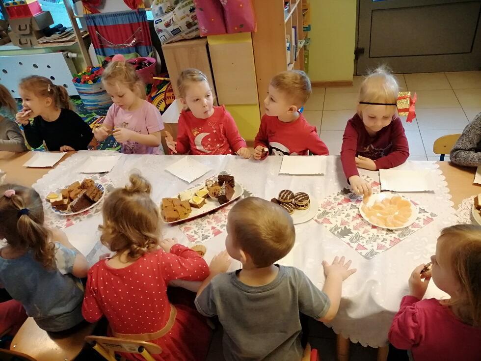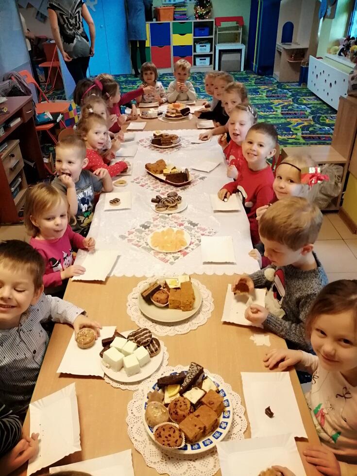 Dnia 20.12.19 roku dzieci w odświętnych strojach, po uprzednim podzieleniu się opłatkiem oraz złożeniu sobie świątecznych życzeń, zasiadły przy wigilijnym stole. Nie zabrakło również wspólnego śpiewania kolęd. Uroczystość zakończyła się słodkim poczęstunekiem przygotowanym przez rodziców. Dziękujemy rodzicom za zaangażowanie.
