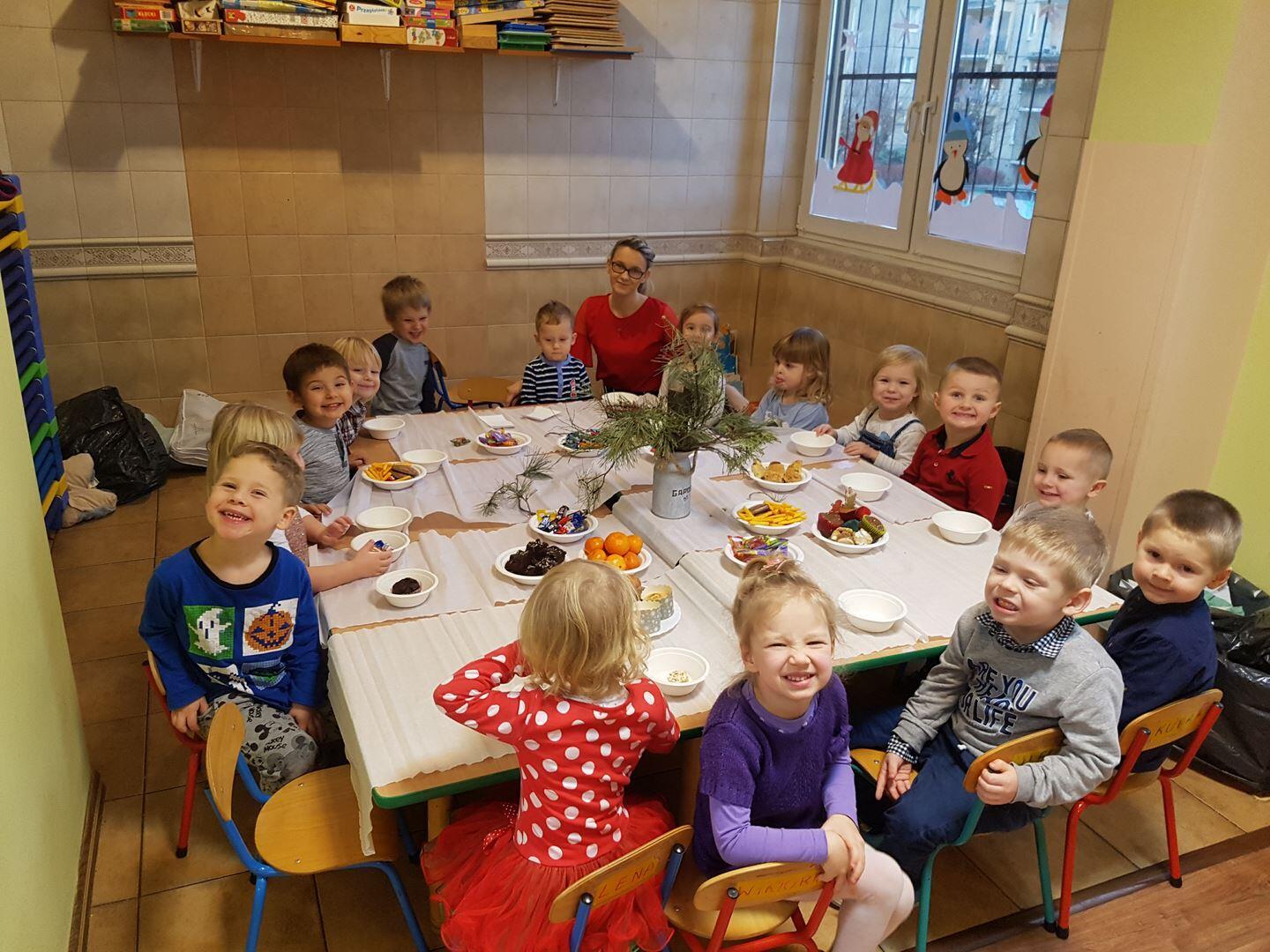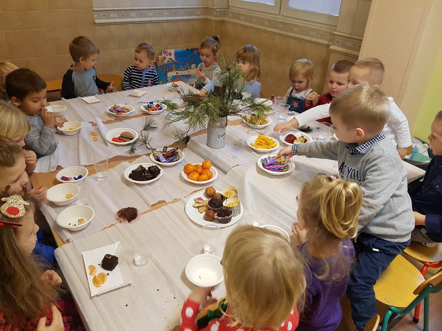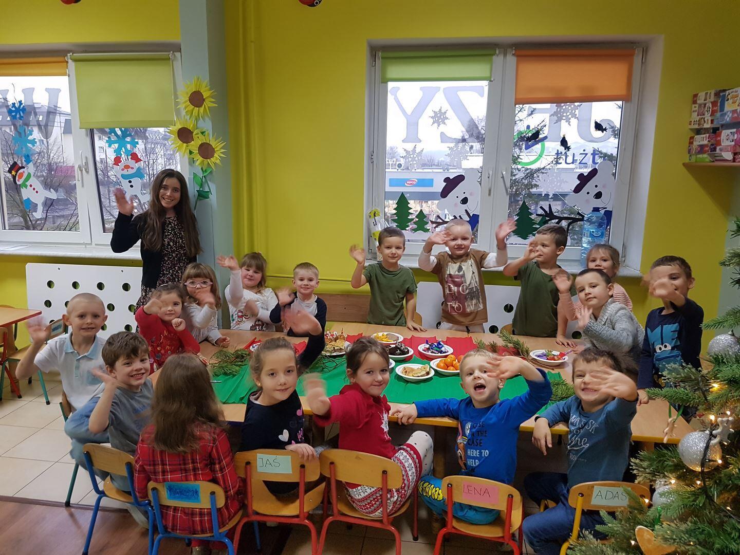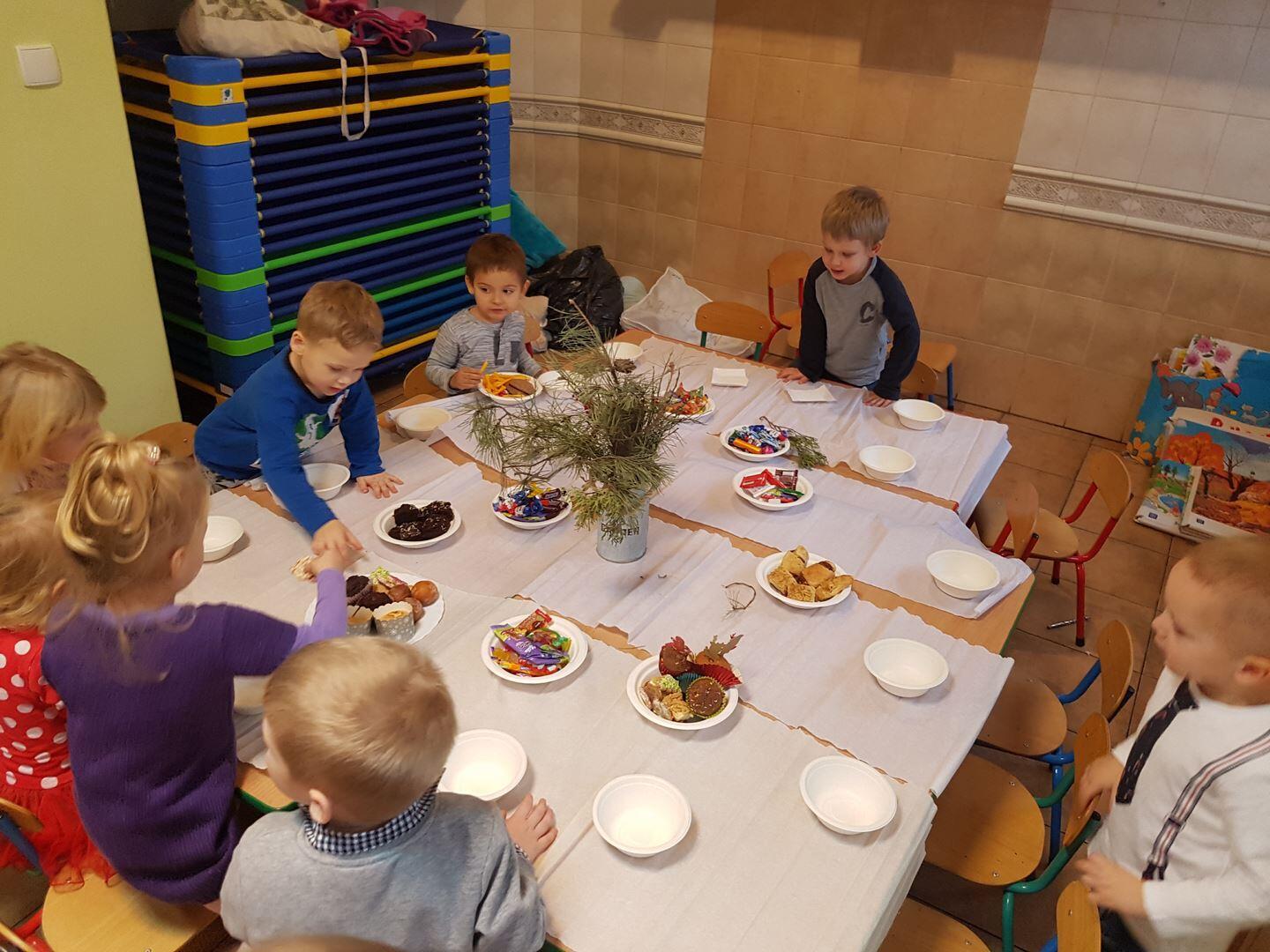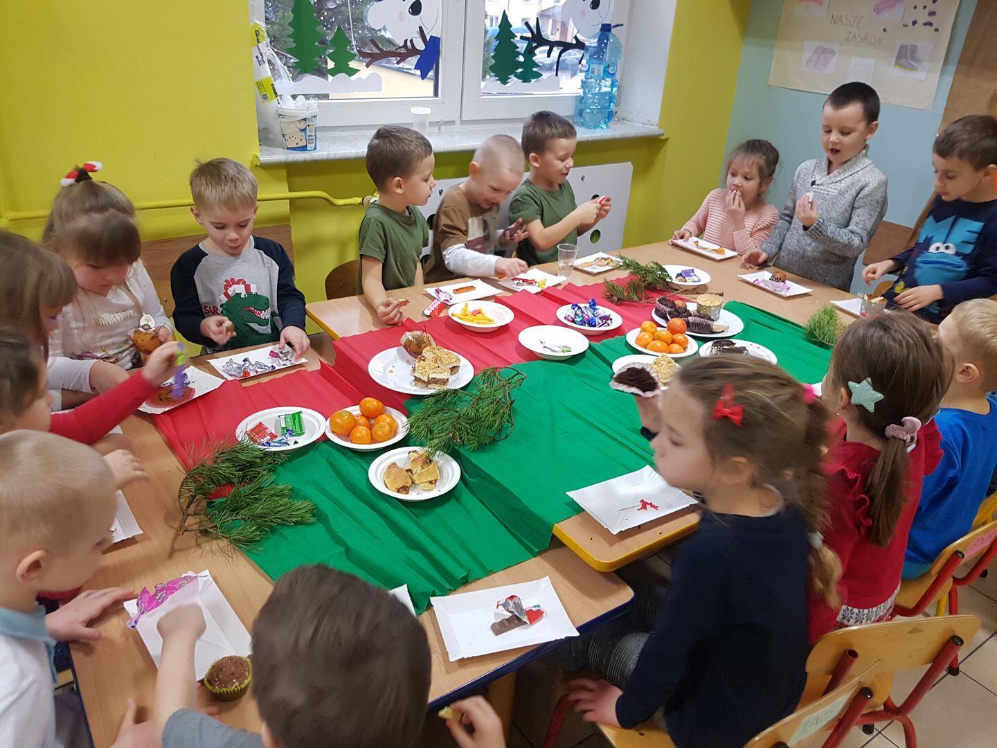 22 grudnia zorganizowaliśmy przedszkolną Wigilię. Wspólnie kolędowaliśmy, Pani przygotowały tematyczne zagadki oraz opowiedziały o tradycjach związanych z Wigilią. Po wszystkim złożyliśmy sobie świąteczne życzenia i wspólnie zasiedliśmy do stołu, gdzie czekał słodki poczęstunek. Poczuliśmy magię świąt.