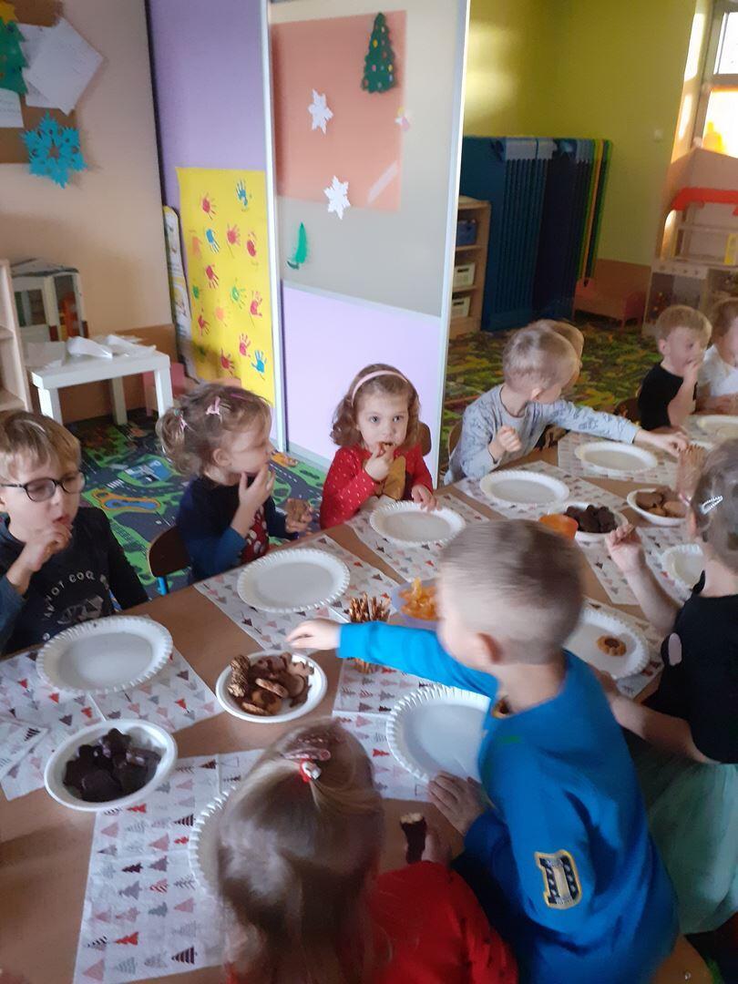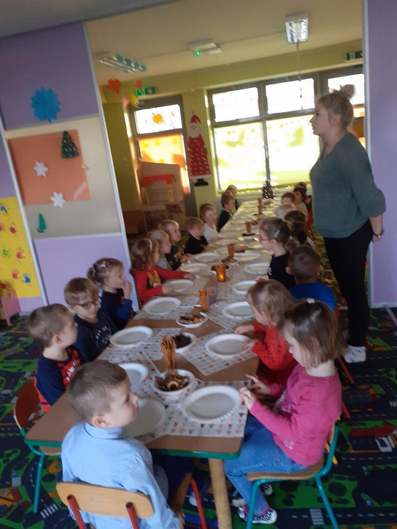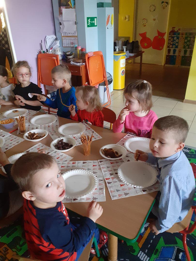 W DNIU 18.12.2020 ODBYŁA SIĘ WIGILIA PRZEDSZKOLNA . DZIECI WSPÓLNIE SPĘDZIŁY CZAS PRZY STOLE . OMAWIALIŚMY JAKIE POTRAWY SPOŻYWAMY W WIGILIĘ ORAZ JAKIE SĄ TRADYCJE ŚWIĄTECZNE. RAZEM ŚPIEWALIŚMY KOLĘDY.