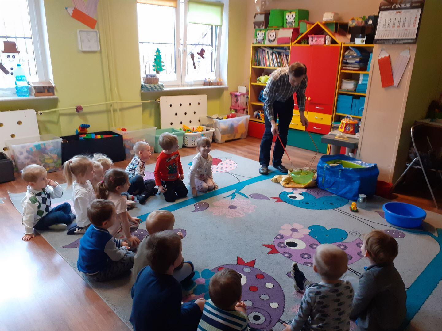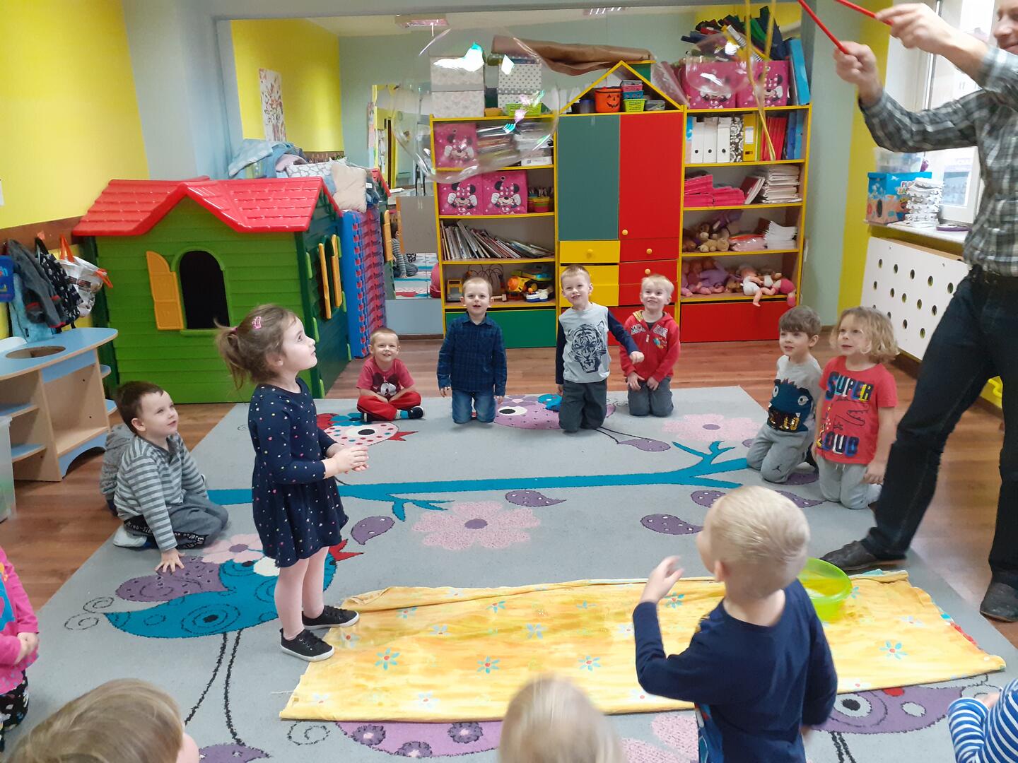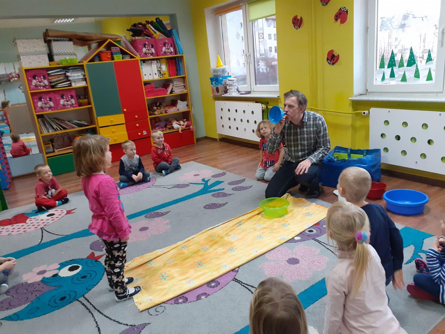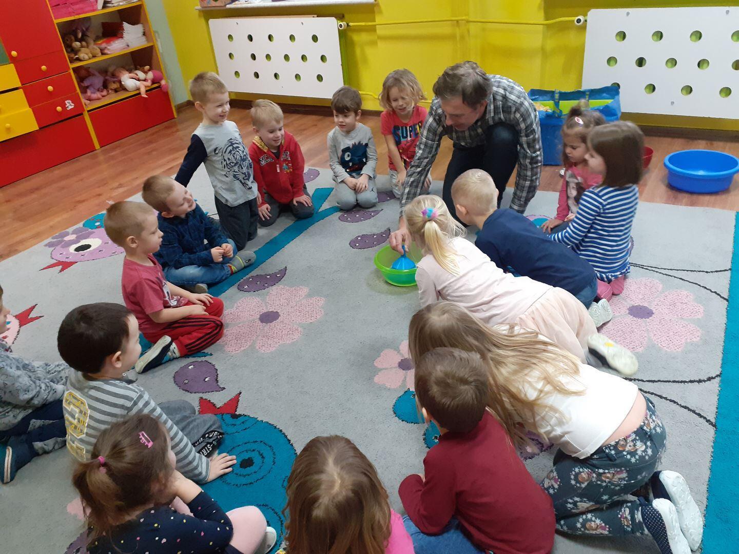 Dzisiaj zawitał do nas niespodziewany gość - Pan fizyk. Pan przedstawił nam jak działa cząsteczkowy świat  wody w połączeniu z detergentami.  Mieliśmy okazję dotykać gigantyczne bańki oraz zobaczyć dziurę w wodzie. To były niesamowite doświadczenia!