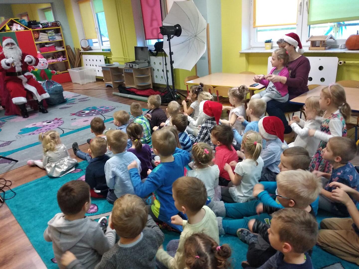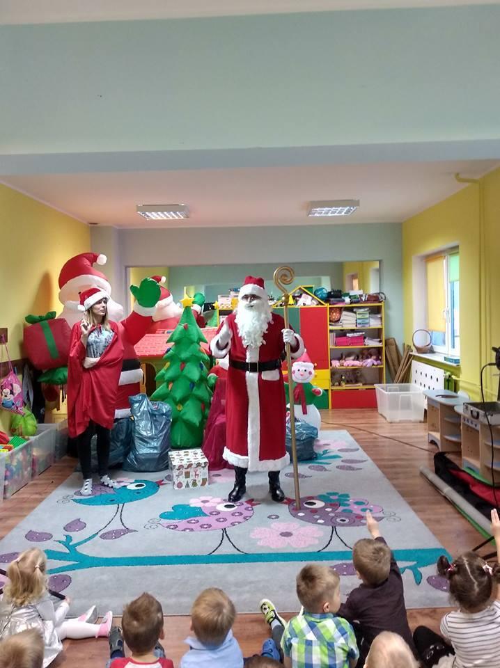 5 grudnia do naszego przedszkola zawitał Mikołaj. Na jego wizytę przedszkolaki czekają niemal cały rok z niecierpliwością, starannie się do niej przygotowując. Dzieci przystroiły choinki w swoich salach oraz przygotowały laurki i piosenki, żeby podziękować Mikołajowi za prezenty.  Na wszystkich twarzach królował uśmiech i zadowolenie z niespodzianek. Dzieci z pewnością długo będą wspominać ten dzień, a cenną pamiątką będą zdjęcia. Kilka zdjęć z tej wizyty przedstawiamy poniżej.