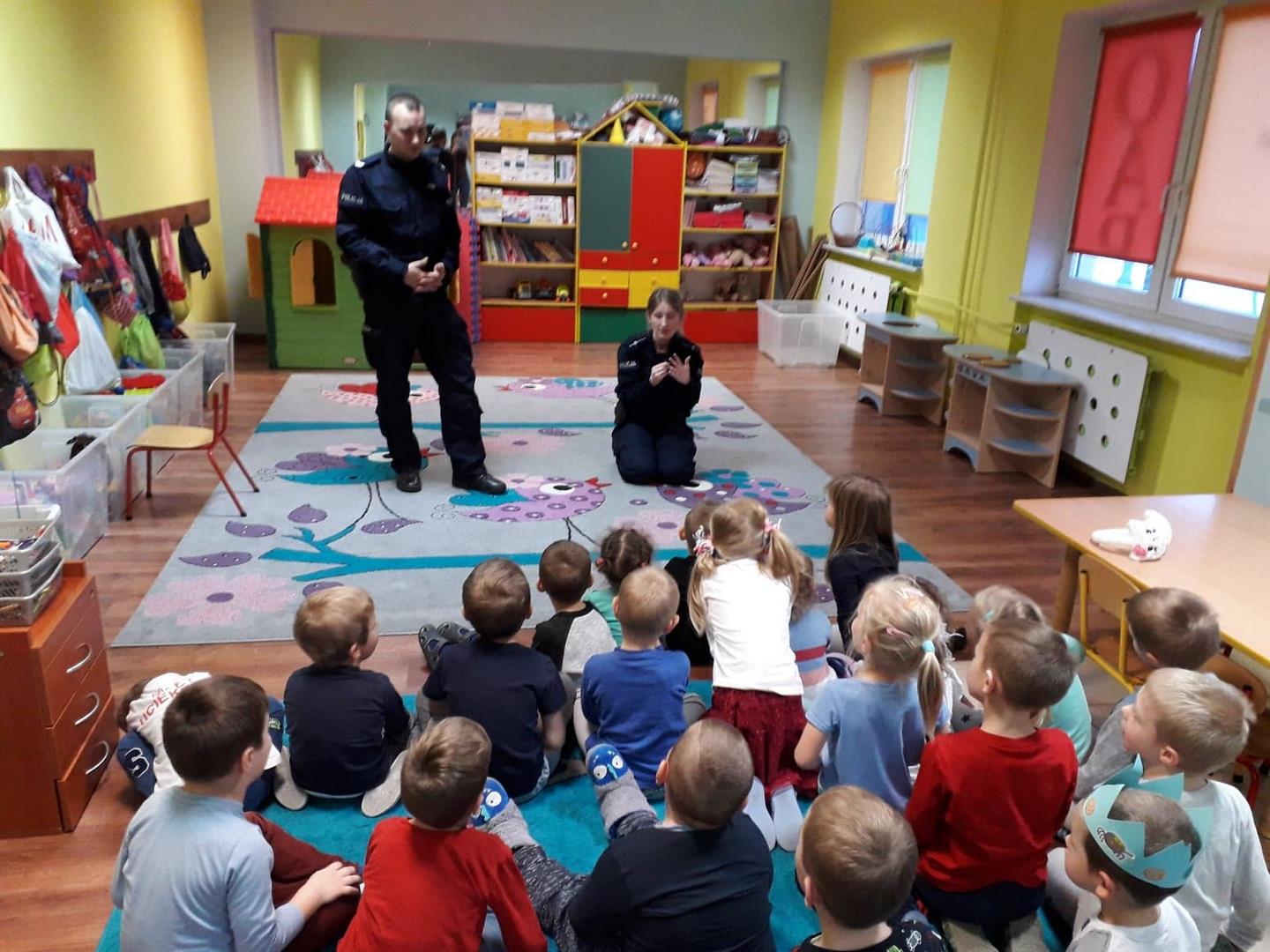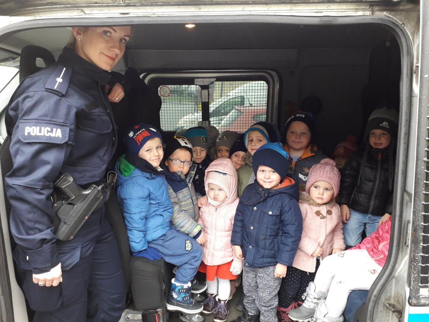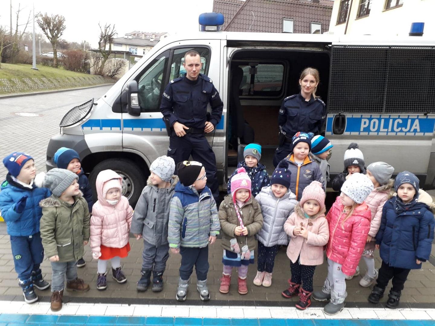 Pod koniec emocjonującego tygodnia, związanego z wizytą Świętego Mikołaja, kolejną niespodziankę zrobili nam policjanci z Komendy Miejskiej.  Goście przyjechali do nas prawdziwym radiowozem, który osobiście mogliśmy zwiedzić, a nawet zrobić sobie zdjęcia. Usłyszeliśmy jak wygląda praca prawdziwego policjanta, dostaliśmy cenne rady, jak zachowywać się w sytuacjach zagrożenia, przypomnielismy sobie numery alarmowe oraz mogliśmy zobaczyć, z czego składa się codzienny strój naszych gości.