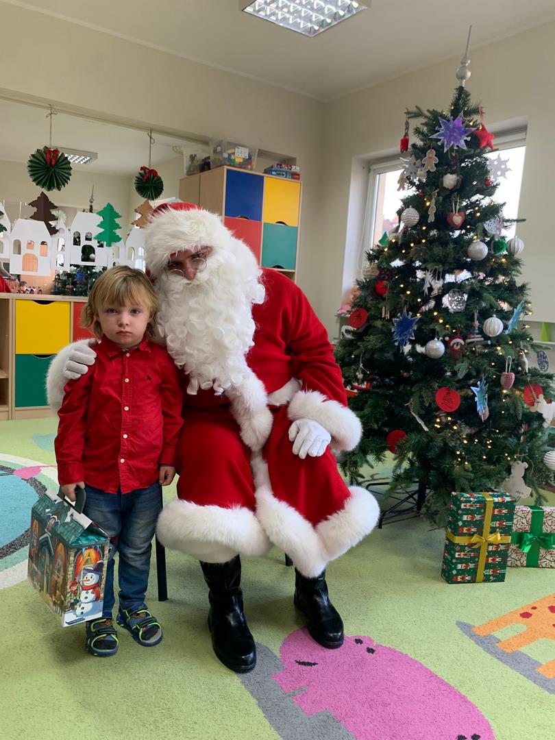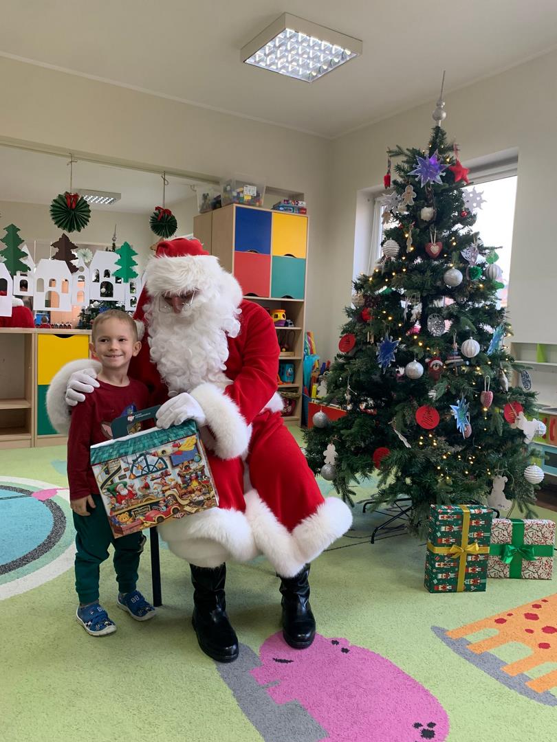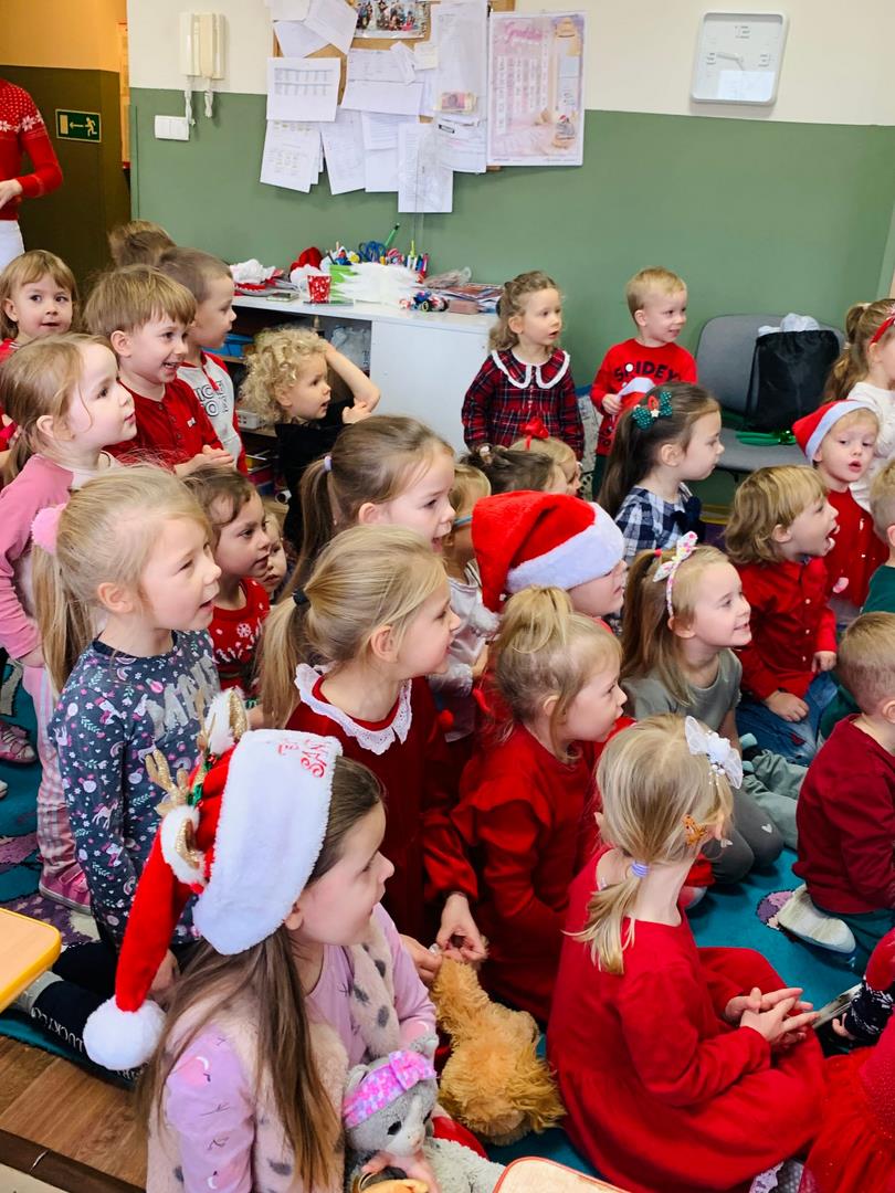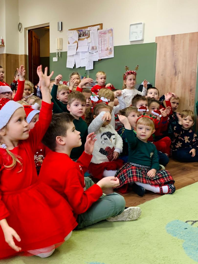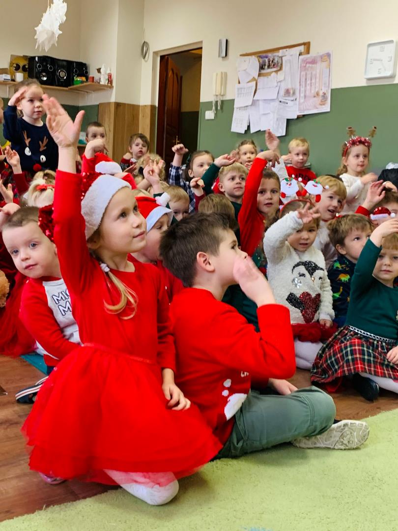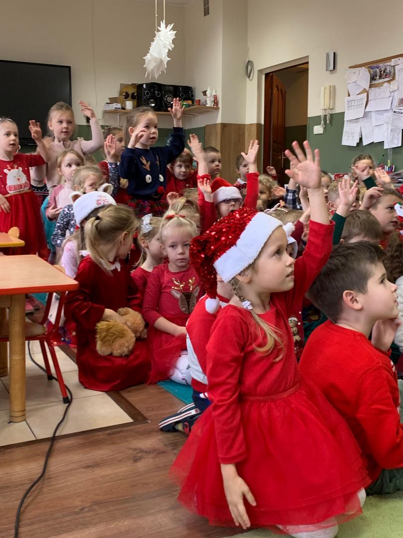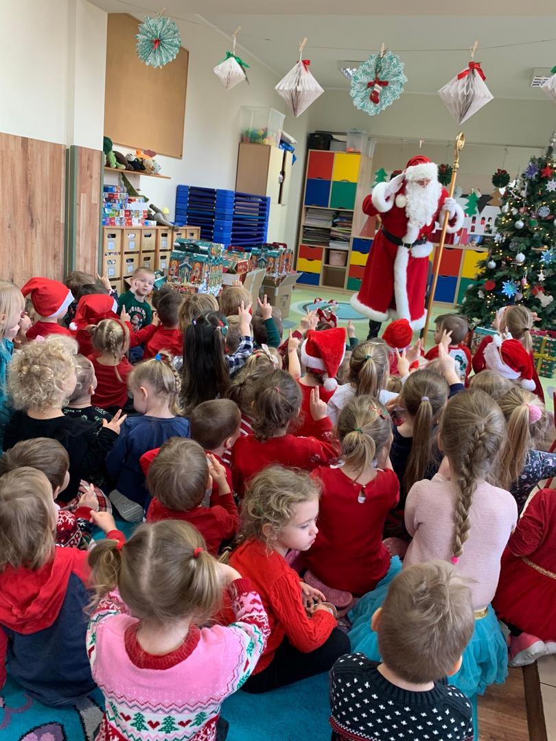 Co to by były za emocje!  Odwiedził nas dzisiaj Mikołaj, opowiedział nam o swojej pracy, tańczył z nami wesoło, pokazując różne gesty. Cała sala poczuła magię świąt.