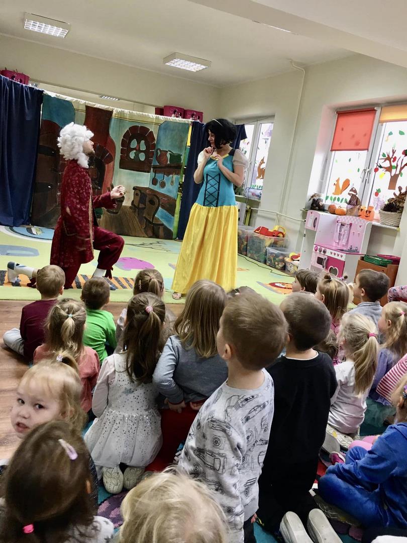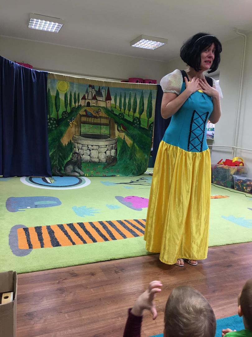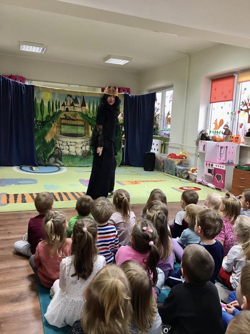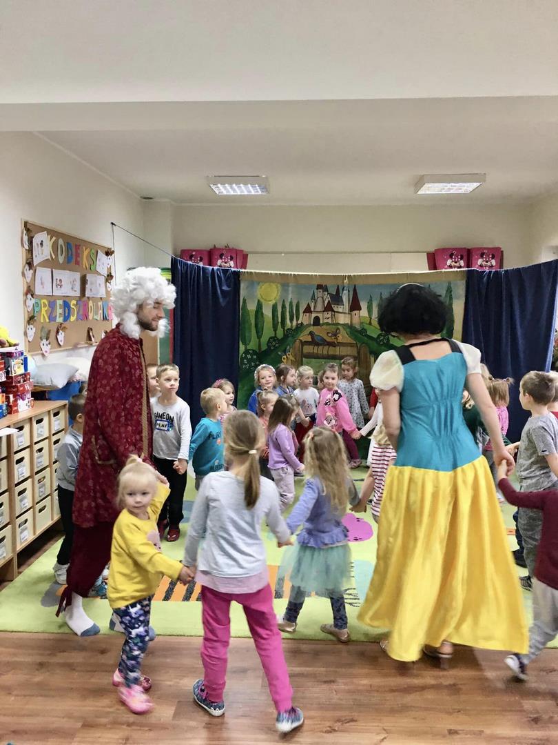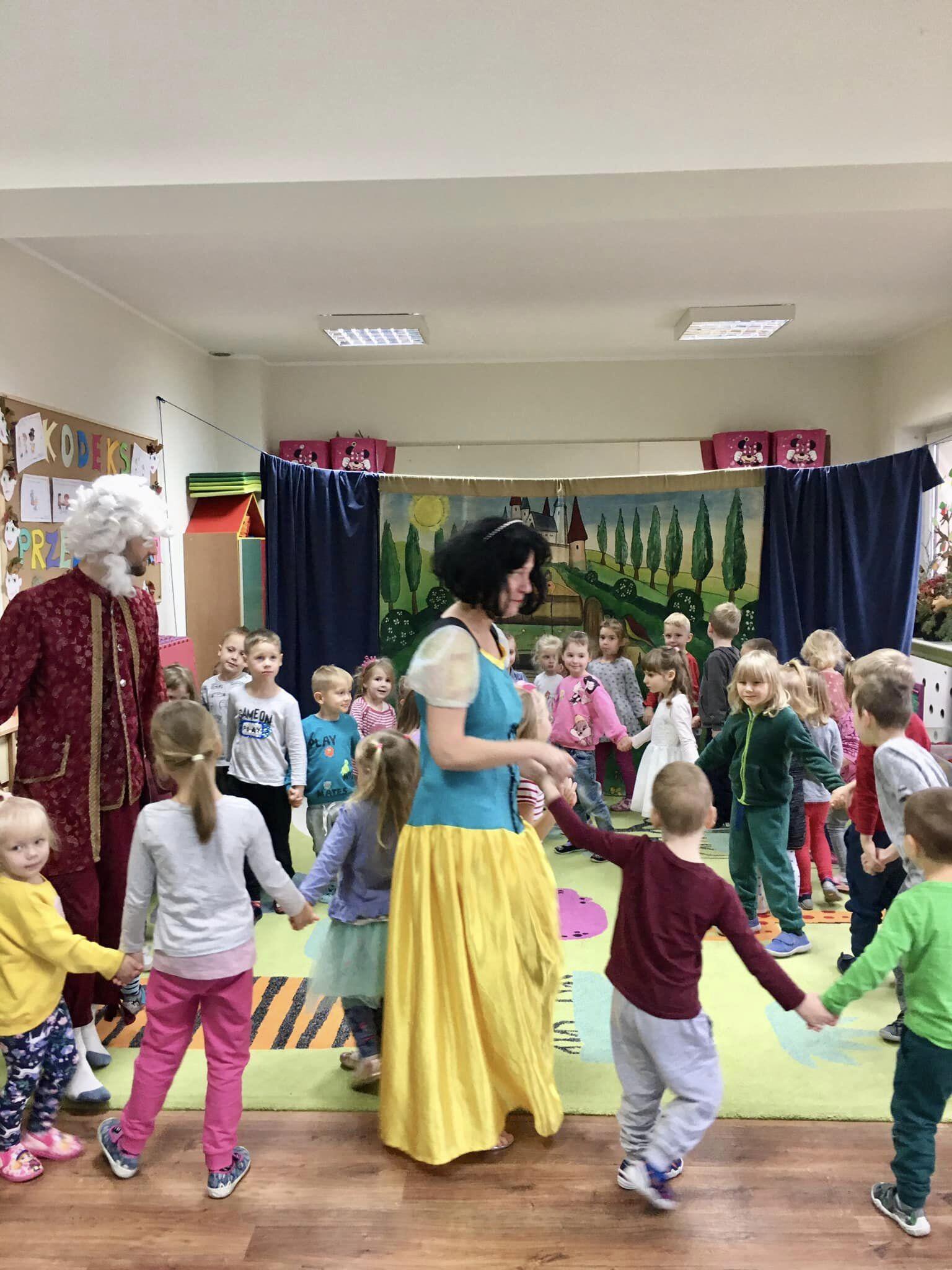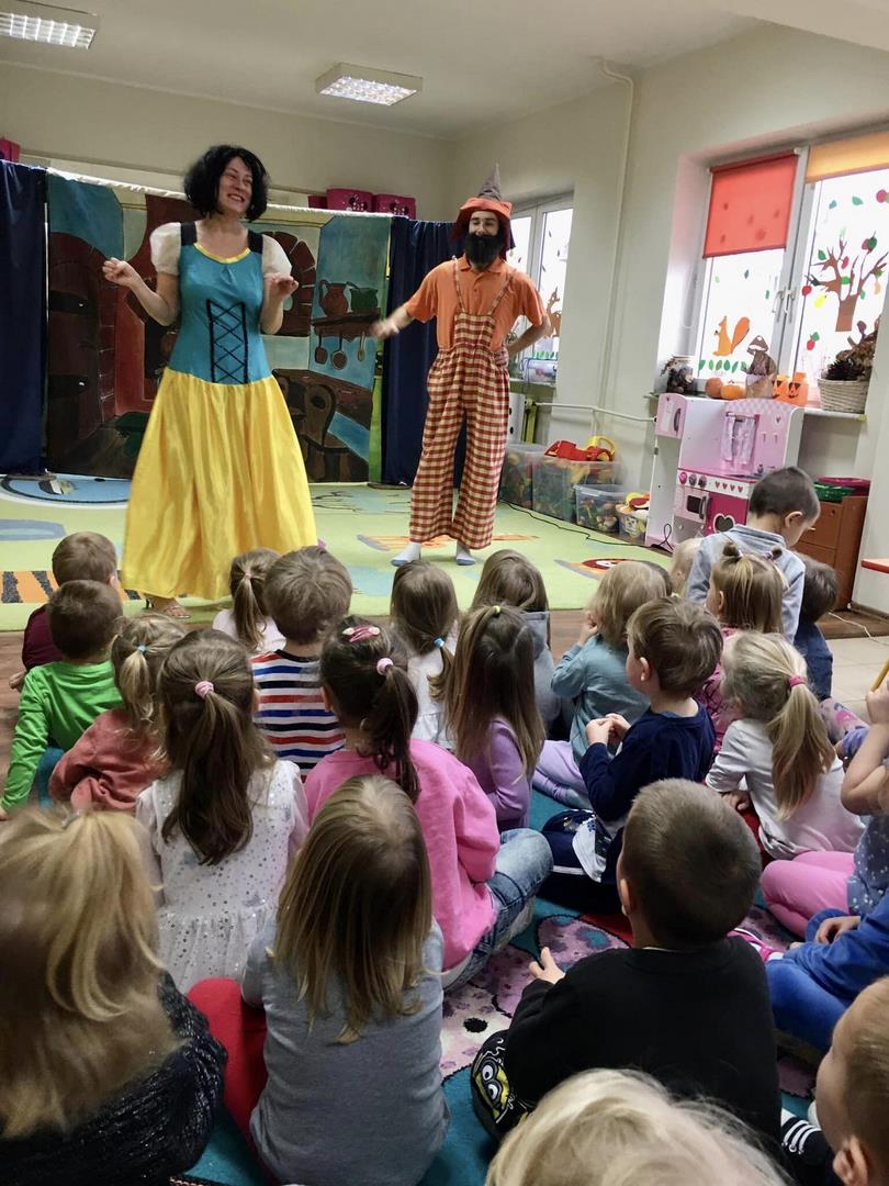 Teatr Krak-Art odwiedził nas 23 listopada, przedstawiając historię Królewny Śnieżki. ?Aktorzy pokazali dzieciom jak cenne w życiu potrafią być wartości, do których zaliczamy: miłość, przyjaźń i troskę, w przeciwieństwie do urody i władzy, które mogą doprowadzić do zguby i szaleństwa. Śnieżka, która została wygnana przez złą macochę z zamku swojego ojca, znajduje w lesie schronienie, w domku siedmiu krasnoludków. Nieopodal chatki poznaje młodego księcia, który informuje ją o bezlitosnych rządach i czynach obecnej królowej. Śnieżka spotyka też na swojej drodze biedną staruszkę, która obdarowuje dziewczynę zatrutym jabłkiem. Natychmiast po spróbowaniu owocu, Śnieżka traci przytomność, a wszyscy jej przyjaciele myślą, że Królewna umarła. Książę stara się złamać zaklęcie rzucone przez królową i przy współpracy z krasnoludkami udaje mu się wybudzić Śnieżkę. Zakochany Książę prosi dziewczynę o rękę i zaprasza wszystkich do świętowania zaręczyn, wspólnie bawiąc się i tańcząc. ??❤️