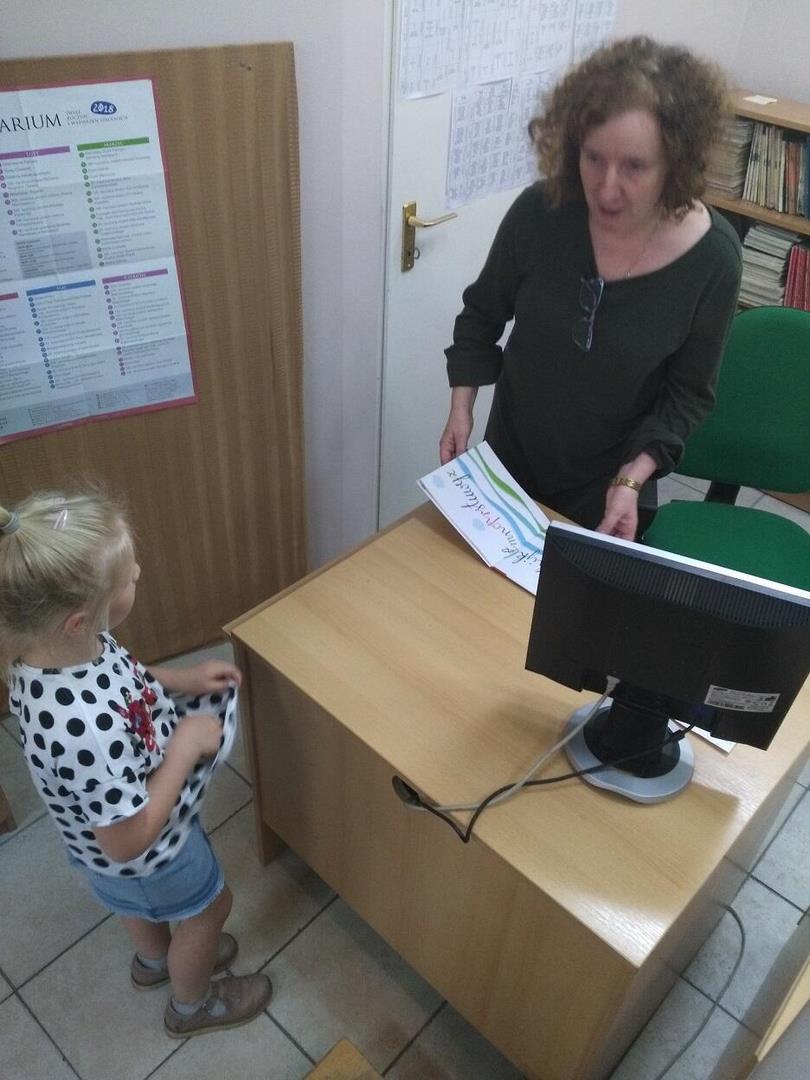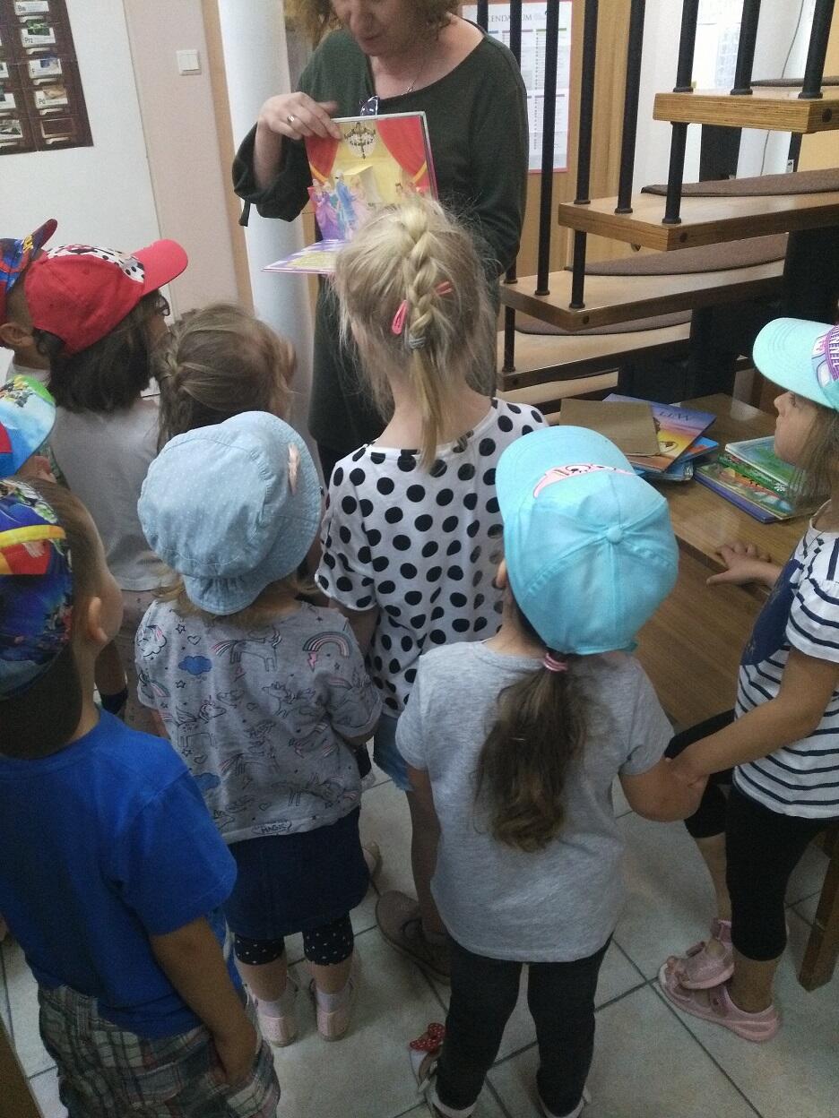 Dnia 16.05.2018 roku, wybraliśmy się w odwiedziny do biblioteki znajdującej się w Szkole Podstawowej nr 76 w Gdańsku. Celem wycieczki było kształtowanie i rozwijanie zainteresowań czytelniczych, kształtowanie poczucia szacunku dla książek oraz wyrabianie u dzieci nawyku korzystania ze zbiorów bibliotecznych. Bibliotekarka - Pani Kasia zapoznała dzieci z wyglądem biblioteki oraz oprowadziła nas między regałami wypożyczalni. Opowiedziała przedszkolakom o swojej pracy oraz przygotowała kilka quizów i zagadek dotyczących książek. Na koniec dzieci zostały zaproszone na słodki poczęstunek. W ramach podziękowania za wspaniałą wycieczkę przedszkolaki wręczyły Pani własnoręcznie wykonany album z rysunkami oraz słodką bombonierkę. Dla wielu uczestników wycieczki, była to pierwsza wizyta w „domu książek”, ale na pewno nie ostatnia. Dzieci obiecały Pani Kasi, że niedługo znów ją odwiedzą.