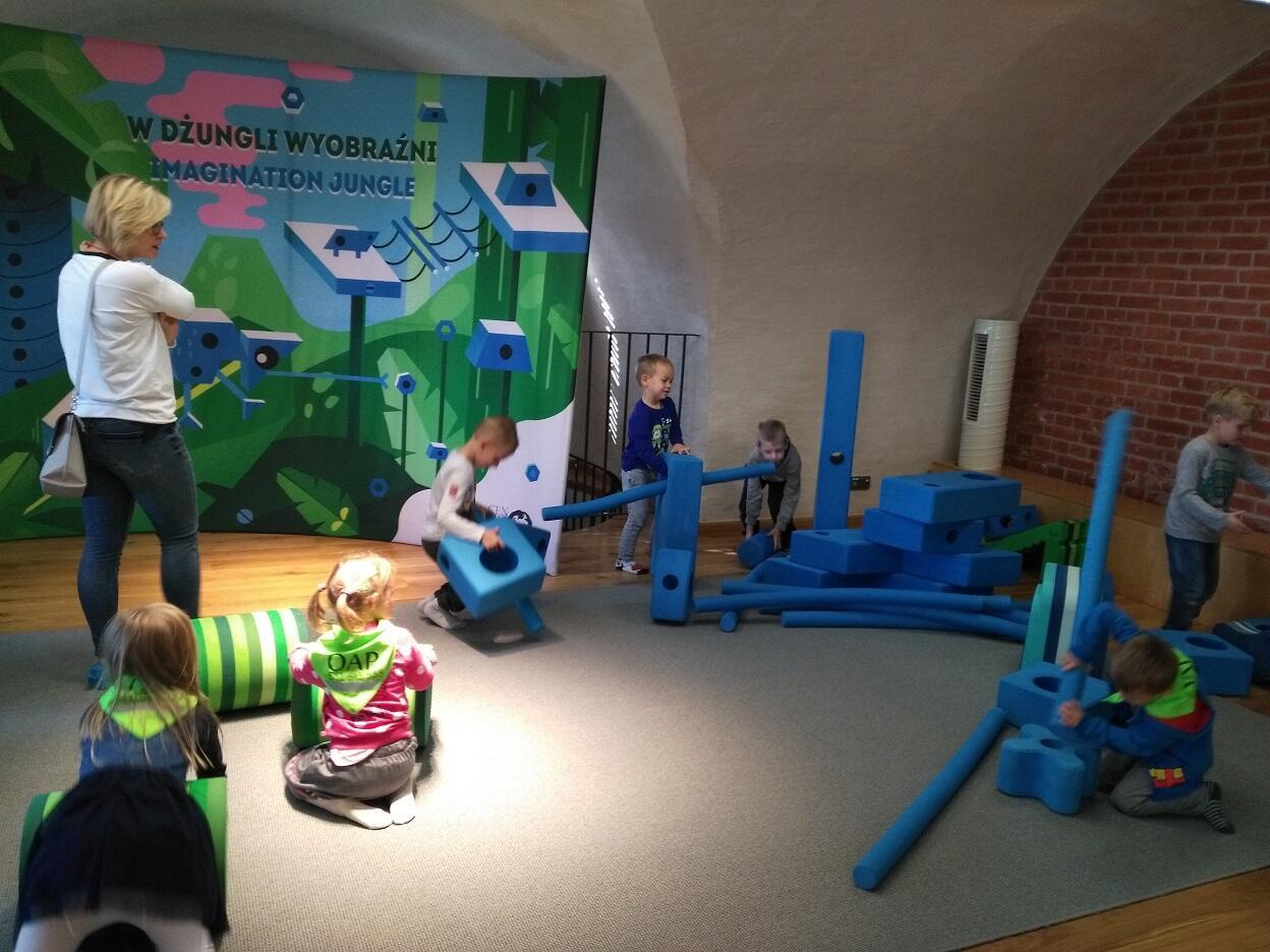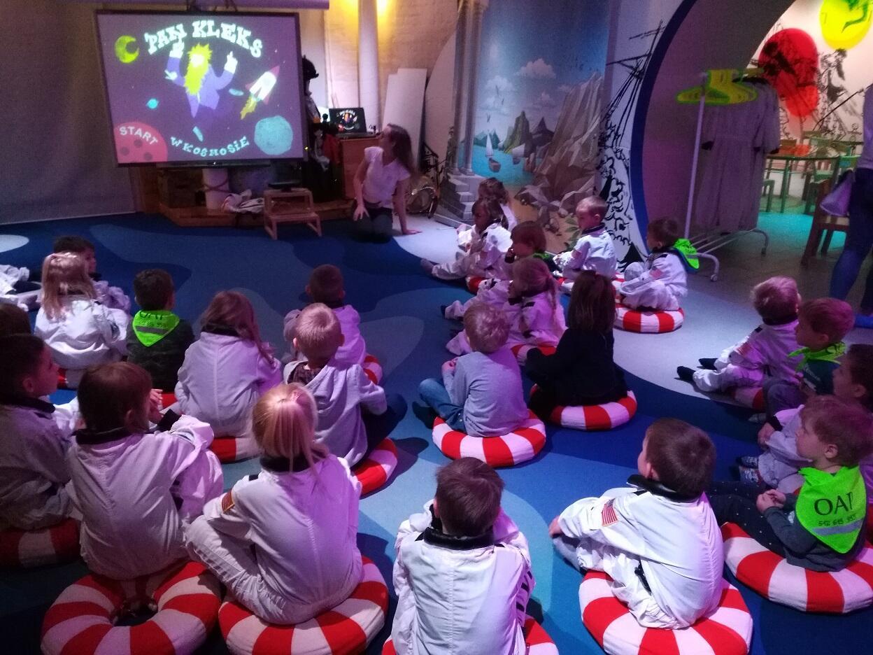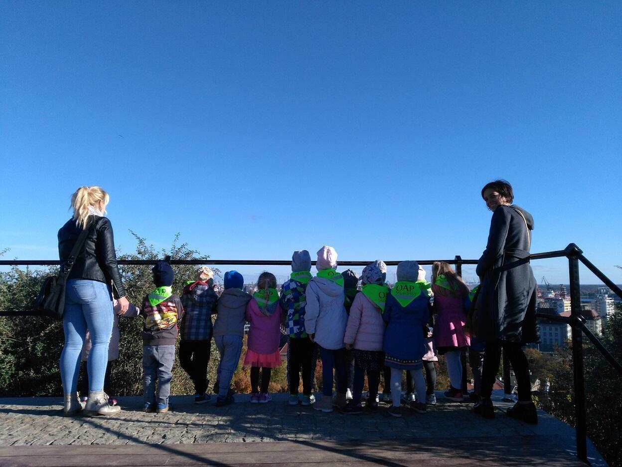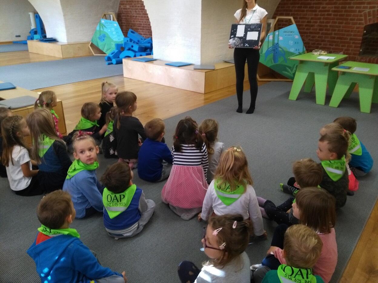Dnia 19 października przedszkolaki miały okazję odwiedzić „Centrum Hewelianum” w Gdańsku. W pierwszym etapie wycieczki zostaliśmy zaproszeni do udziału w zadaniach przygotowanych przez animatora na interaktywnym placu zabaw; dzieci rozwiązywały zagadki, uzupełniały obrazki o brakujące części oraz miały okazję przy pomocy pracy zespołowej stworzyć budowle z klocków według własnego pomysłu. W końcowym etapie odwiedziliśmy dwie bajkowe krainy składające się na kolorowe „Laboratorium Pana Kleksa”. W pierwszej kolejności dzieci w wyjątkowej scenerii poszukiwały bohaterów wierszy Jana Brzechwy. Następnie Pani animator zabrała dzieci w podróż „na księżyc”, w związku z czym ubraliśmy bezpieczne kombinezony, wsiedliśmy do statku i wyruszyliśmy w drogę. Na zakończenie wycieczki zwiedzilismi wspólnie "Górę Gradową", z której podziwialiśmy panoramę Gdańska.