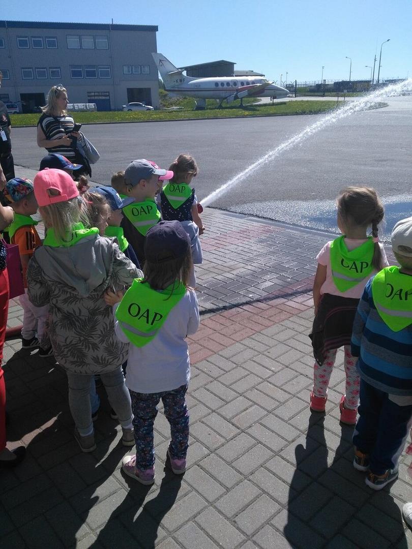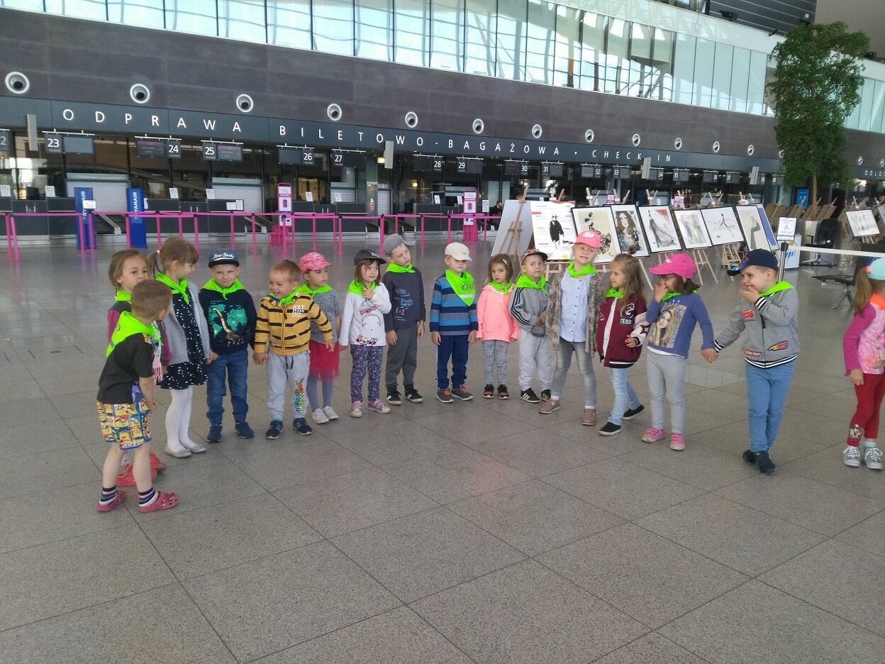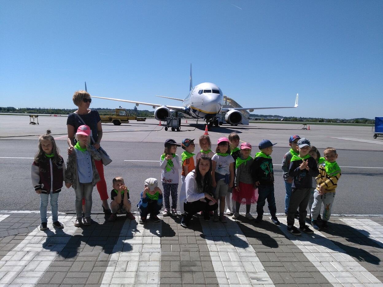Celem wycieczki było zapoznanie dzieci z pracą ludzi na lotnisku oraz z jego funkcjonowaniem. W początkowej fazie wycieczki przedszkolaki zostały zaopatrzone w karty pokładowe dzięki, którym miały okazję uczestniczyć w odprawie bagażowej. Zostaliśmy tu poddani kontroli bezpieczeństwa, gdzie przechodziliśmy przez bramkę wykrywającą niebezpieczne przedmioty. Przedszkolaki miały okazję dowiedzieć się czego nie wolno wnosić na pokład samolotu i co zrobić, aby odprawa odbyła się szybko i sprawnie. Następnie udaliśmy się do punktu Lotniskowej Straży Pożarnej, gdzie mieliśmy okazję zobaczyć nowoczesne wozy strażackie. Największe wrażenie na dzieciach wywołała możliwość wypróbowania węża strażackiego. Mieliśmy również okazję obejrzeć wnętrze wozu strażackiego oraz ambulansu. Dzieci zostały również zaproszone do małego samolotu pasażerskiego, w którym mogły na chwilę wcielić się w rolę pilotów. W końcowym etapie wycieczki odwiedziliśmy sortownię bagażu, w której dowiedzieliśmy się w jaki sposób bagaże dostają się do samolotów. Przewodnicy towarzyszący nam podczas wycieczki udzielili nam wielu ciekawych wskazówek związanych z ich pracą na lotnisku.