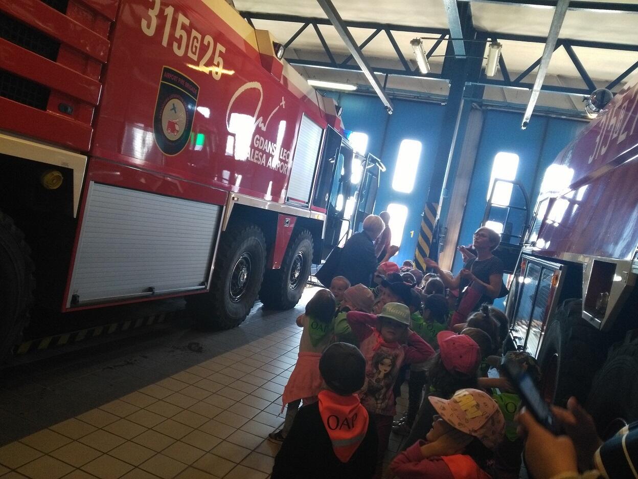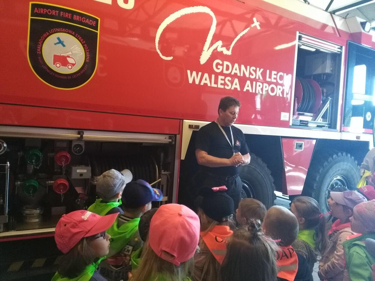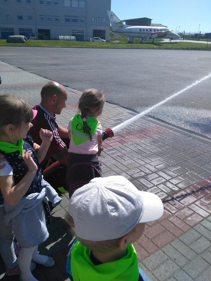 Celem wycieczki było zapoznanie dzieci z pracą ludzi na lotnisku oraz z jego funkcjonowaniem. W początkowej fazie wycieczki przedszkolaki zostały zaopatrzone w karty pokładowe dzięki, którym miały okazję uczestniczyć w odprawie bagażowej. Zostaliśmy tu poddani kontroli bezpieczeństwa, gdzie przechodziliśmy przez bramkę wykrywającą niebezpieczne przedmioty. Przedszkolaki miały okazję dowiedzieć się czego nie wolno wnosić na pokład samolotu i co zrobić, aby odprawa odbyła się szybko i sprawnie. Następnie udaliśmy się do punktu Lotniskowej Straży Pożarnej, gdzie mieliśmy okazję zobaczyć nowoczesne wozy strażackie. Największe wrażenie na dzieciach wywołała możliwość wypróbowania węża strażackiego. Mieliśmy również okazję obejrzeć wnętrze wozu strażackiego oraz ambulansu. Dzieci zostały również zaproszone do małego samolotu pasażerskiego, w którym mogły na chwilę wcielić się w rolę pilotów. W końcowym etapie wycieczki odwiedziliśmy sortownię bagażu, w której dowiedzieliśmy się w jaki sposób bagaże dostają się do samolotów. Przewodnicy towarzyszący nam podczas wycieczki udzielili nam wielu ciekawych wskazówek związanych z ich pracą na lotnisku.