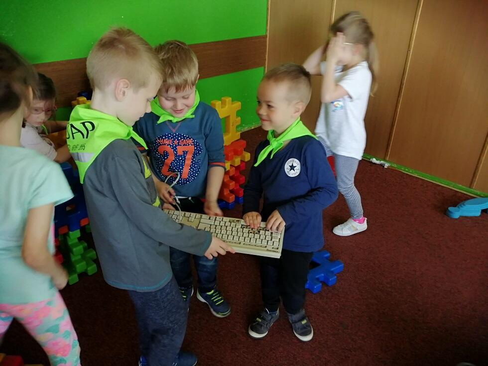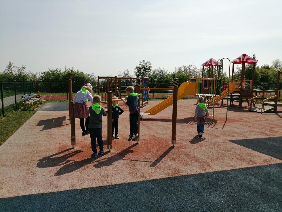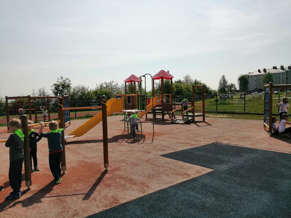 Dnia 20 maja grupa starszaków wybrała się na wycieczkę do Szkoły Podstawowej nr 19 w Gdańsku. Celem wycieczki było zapoznanie przedszkolaków, a przyszłorocznych uczniów, z warunkami szkolnymi i systemem organizacyjnym obowiązującym w szkole. Dzieci dzięk uprzejmości Dyrekcji Szkoły Podstawowej oraz Pani Justyny, miały okazję obejrzeć wygląd szkoły, salę lekcyjną w klasach "0", wyporzyczalnię, stołówkę oraz świetlicę. Największą atrakcją okazał się jednak szkolny plac zabaw, na którym dzieci miały okazję pobawić się podczas zabaw dowolnych.