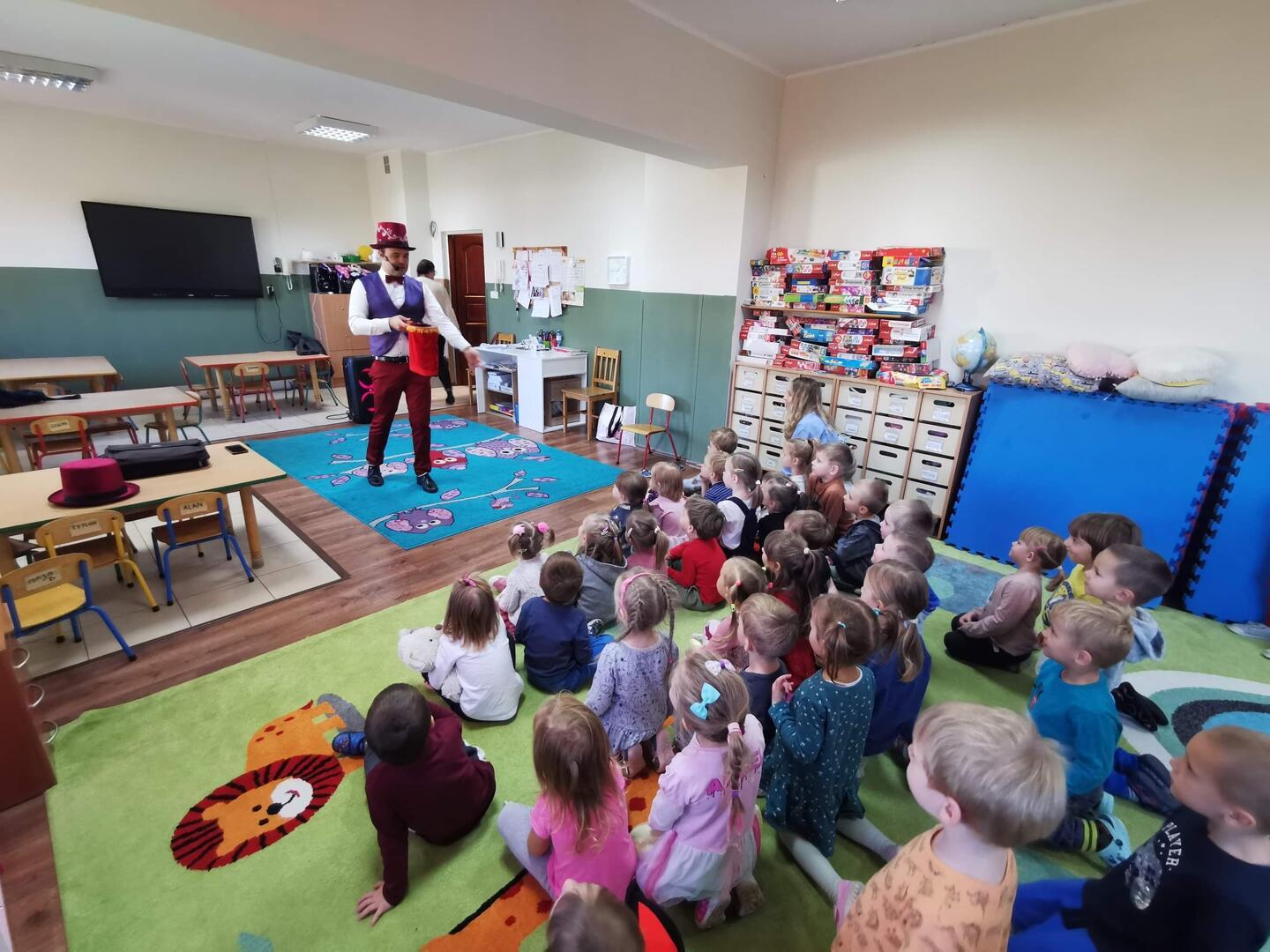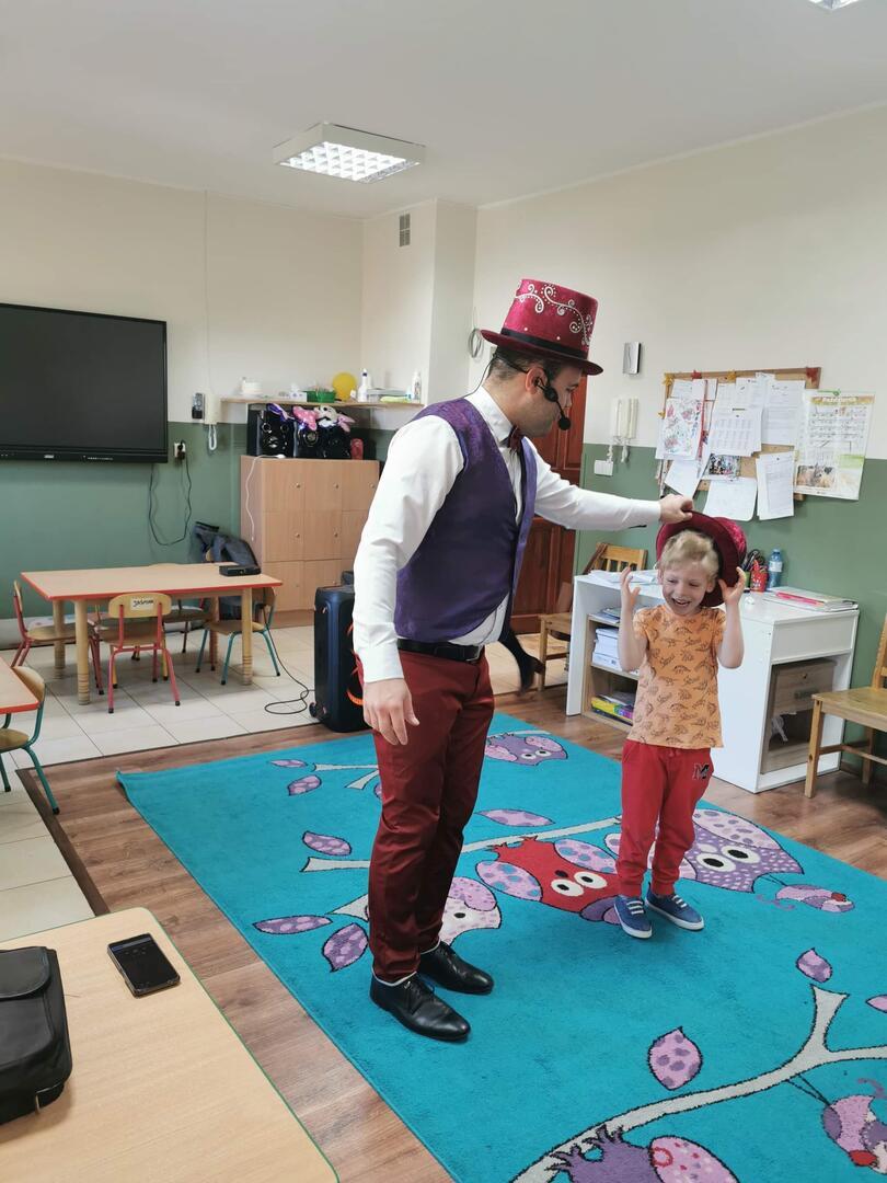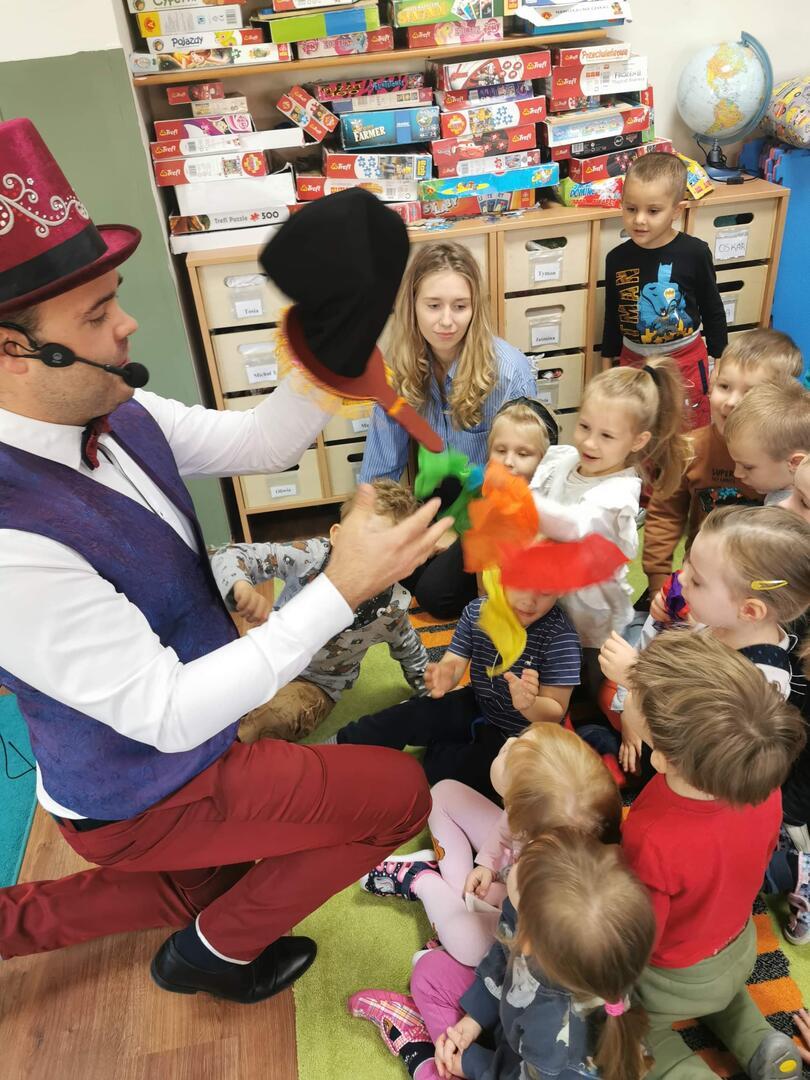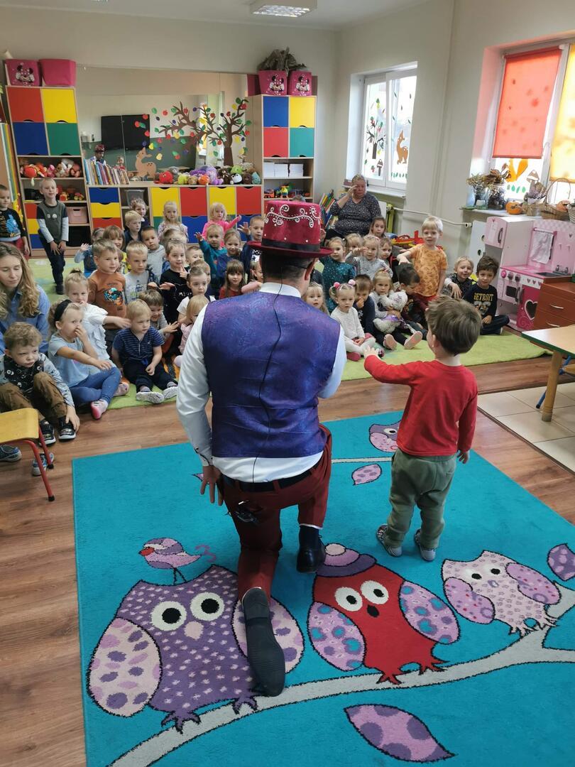 Dnia 10 października 2022r.,  w naszym przedszkolu odbył się występ Magika, który zaprezentował wiele ciekawych trików i sztuczek. Dzieci z wielkim zainteresowaniem i radością uczestniczyły w pokazie. Niektóre z nich miały ważną rolę do odegrania, były asystentem Magika. Wszyscy świetnie się bawili i nie kryli zdumienia, bo przecież za każdą jedną sztuczką pojawiało się zapytanie: ,,Jak to możliwe?''  MAGIA! :)