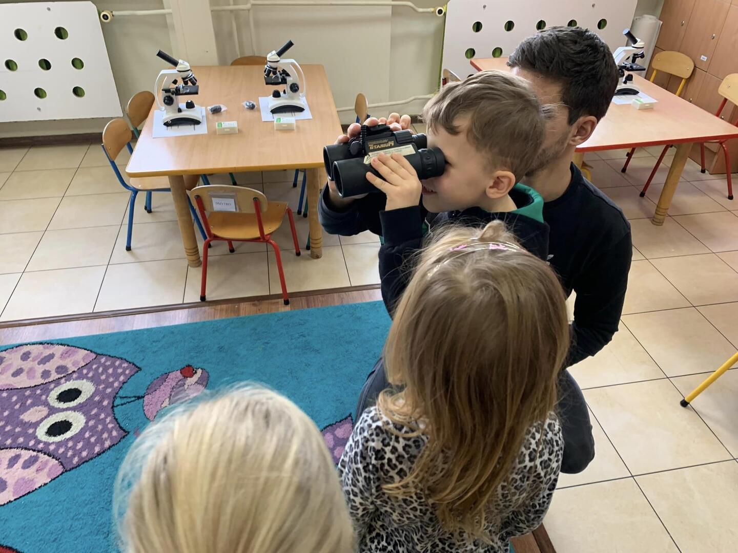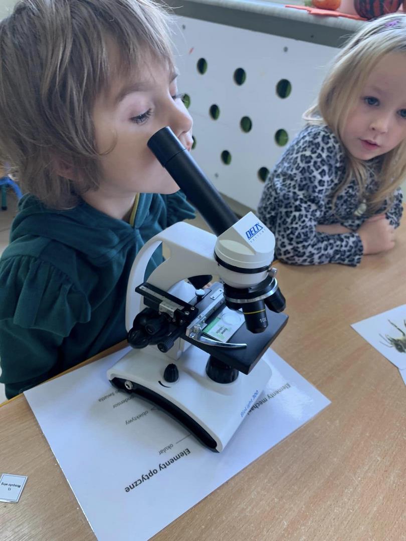 Dnia 9 listopada grupa starszaków uczestniczyła w zajęciach laboratoryjnych. Nasi mali przyrodnicy poznali narzędzia do przeglądania, badania tego co jest trudno dostępne, widoczne dla oka. Okazało się, że mikroskop, lupa i lornetka to zestaw przyrodniczy każdego ciekawskiego badacza, który interesuje i pasjonuje się przyrodą. Zajęcia oferują bogaty zakres obserwacji: od bakterii, wnętrza warzyw, owoców, czy też budowy owadów. ? Tego dnia w naszych obserwacjach skupiliśmy się na budowie owadów: mrówki, motyla, pszczoły, muchy domowej, muchy owocówki, a nawet komara! Udało nam się zobaczyc skrzydła, odnóża owadów, jak również aparat gębowy. Zajęcia były dla nas niezwykle ciekawe i ekscytujące! ???❓Czekamy z niecierpliwością na kolejną wizytę, by ponownie zamienić się w małych przyrodników.