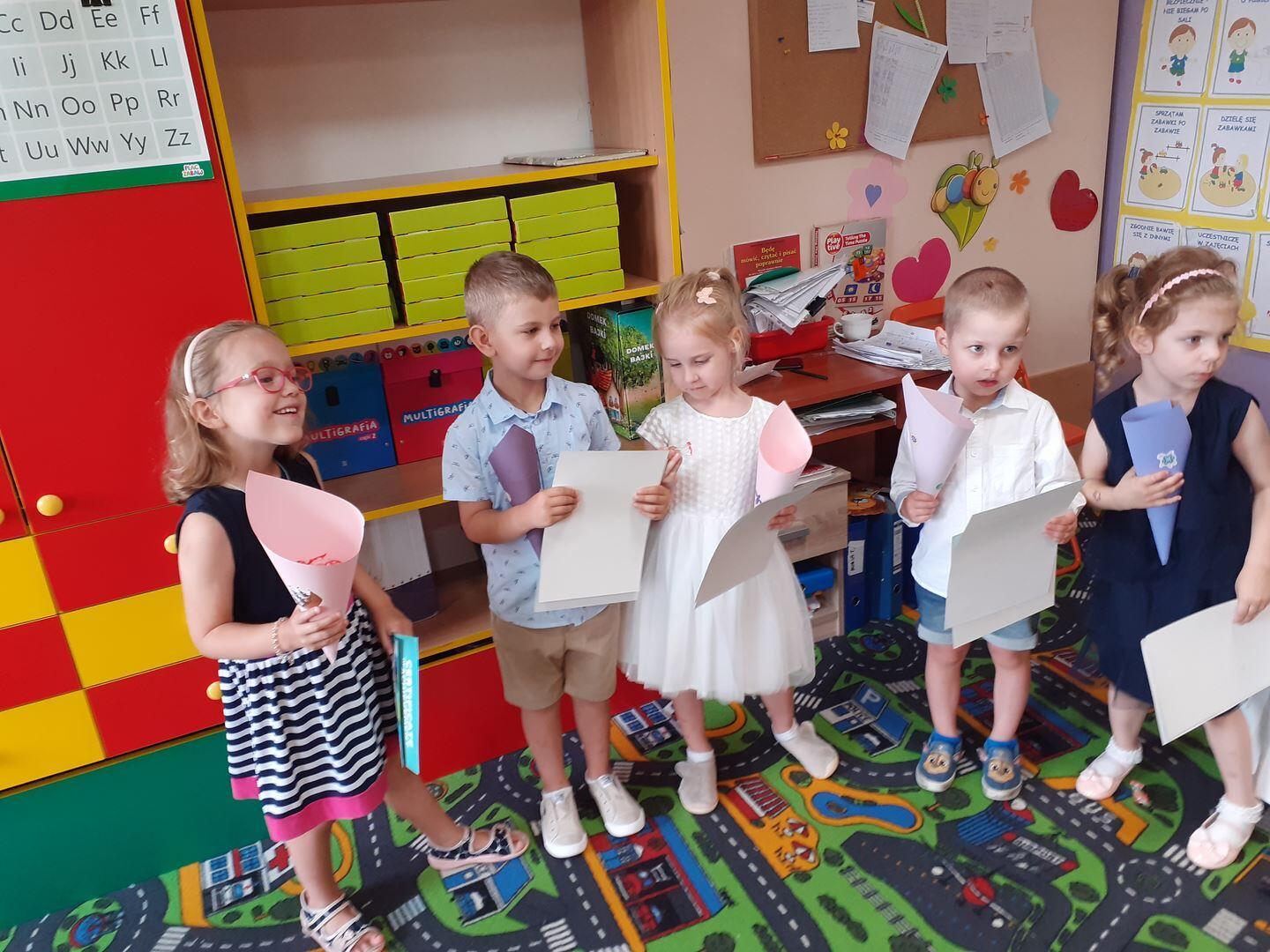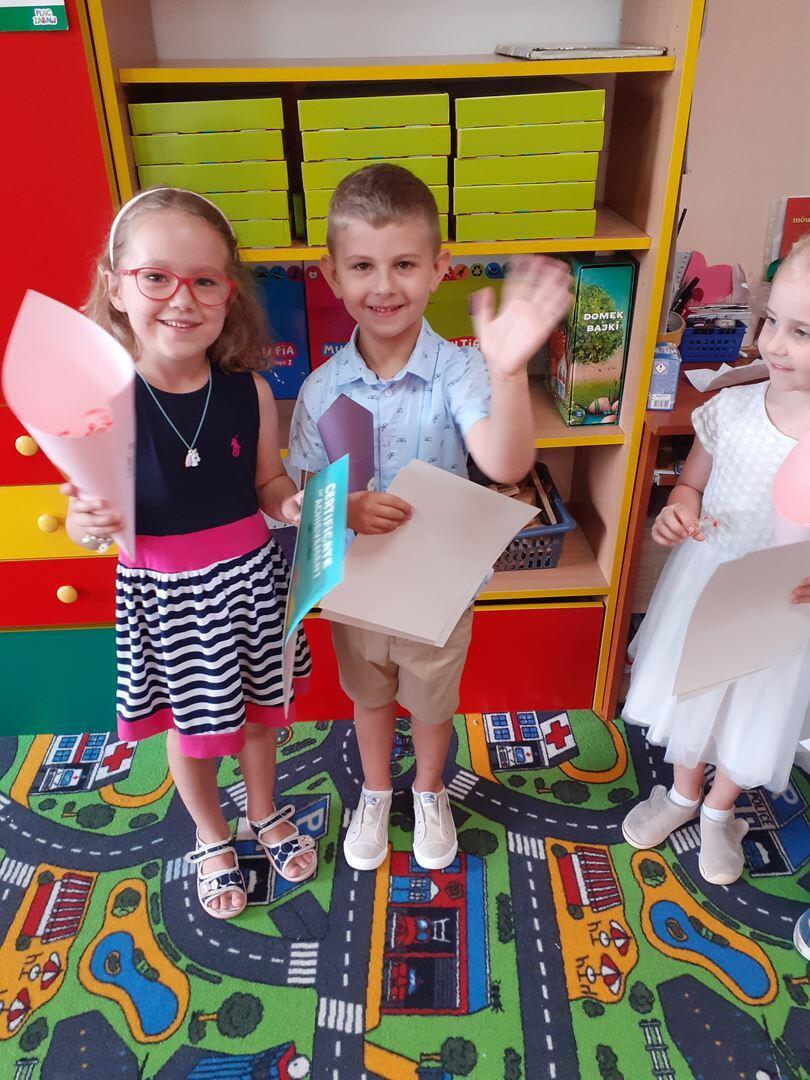 Dziś w przedszkolu odbyło sie przedstawienie pt. Witajcie wakacje . Dzieci wspólnie śpiewały i recytowały wiersze . Nadszedł  długo oczekiwany czas.