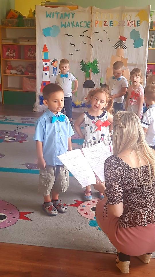25 czerwca 2021r odbyła się w Przedszkolu uroczystość zakończenia roku przedszkolnego oraz pożegnania starszaków. Dziesięć miesięcy wspólnych zabaw, zajęć szybko minęło. Bardzo dużo się nauczyliśmy, bawiliśmy się, wspólnie z naszymi Paniami eksperymentowaliśmy. Pilnie przygotowywaliśmy się do występów , żeby jak najlepiej wypaść Przedszkolaki przygotowały program artystyczny, recytatorski, wokalny oraz taneczny. Po części artystycznej , dzieci otrzymały dyplomy na które pracowały przez cały rok oraz słodki upominek. Pożegnaliśmy się dzisiaj także ze starszakami, którzy od września zaczynają swoja nowa przygodę ze szkołą. Kochanym dzieciom opuszczającym progi naszego przedszkola życzymy bezpiecznych radosnych wakacji , wielu sukcesów i spełnienia marzeń. Dziękujemy również Rodzicom za całoroczną współpracę.