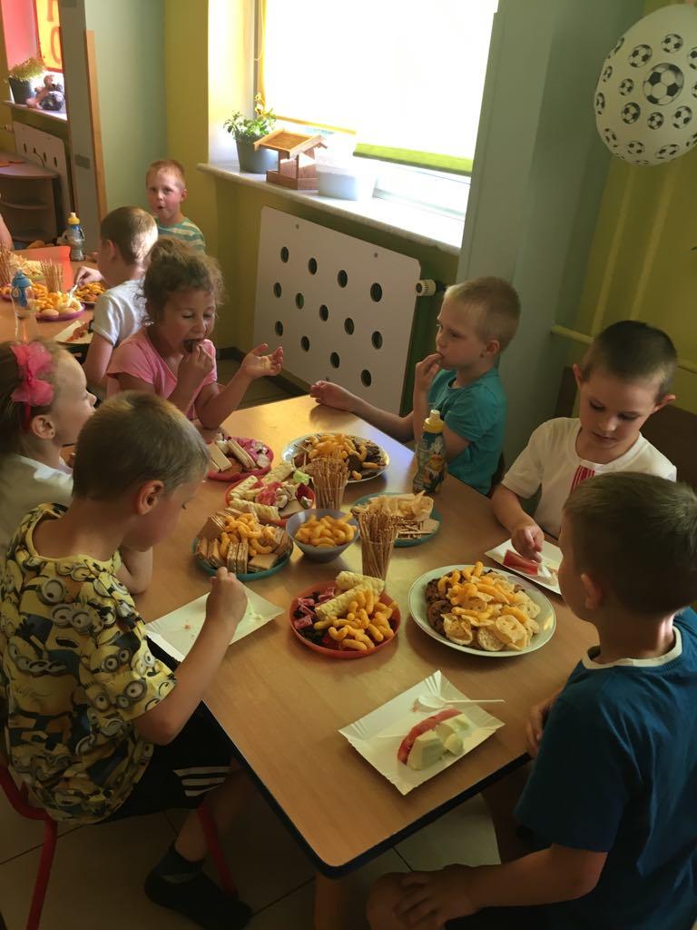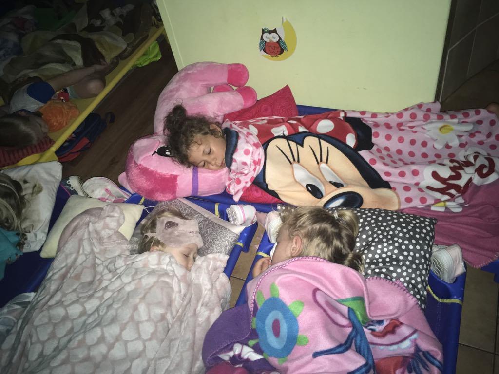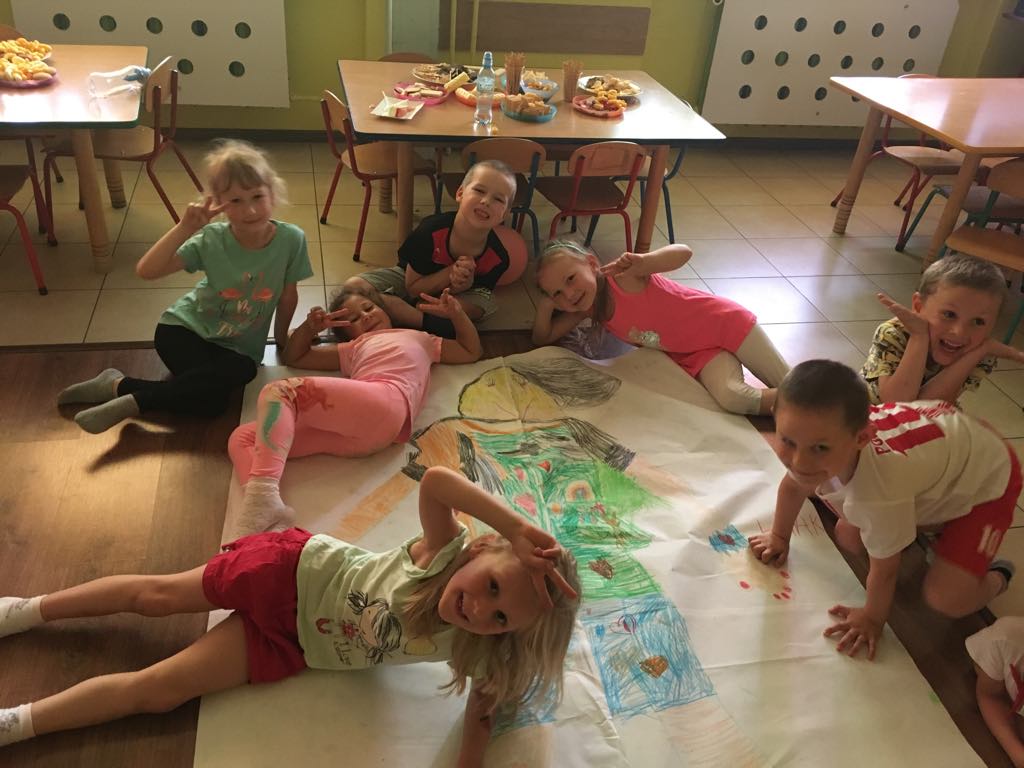14 czerwca nasze kochane starszaki nocowały w przedszkolu. Pani Kasia i Pani Marzenka zorganizowały zieloną noc pełną atrakcji. Była szalona dyskoteka, pyszny poczęstunek, rysowaliśmy nasze Panie oraz mieliśmy seans filmowy. Udało nam się także odnaleźć skarb, którym okazały się lody. Wszyscy dzielnie położyliśmy się do łóżek i spaliśmy do samego rana.